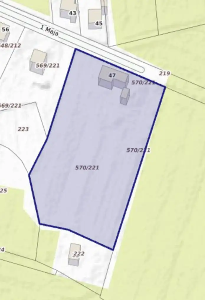 Działka znajduje się na granicy lasów Kuźni Raciborskiej (ostatni budynek przed lasem). Można podzielić ją na 6 - 8 mniejszych działek budowlanych. Na działce znajduje się dom i budynek gospodarczy, nadające się do rozbiórki lub generalnego remontu.