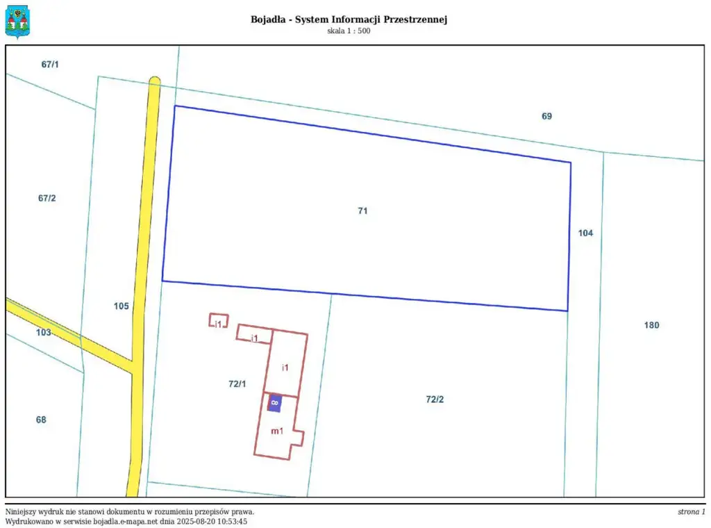 Przeznaczenie Zgodnie z obowiązującym Miejscowym planem zagospodarowania przestrzennego terenów działalności gospodarczej i zabudowy mieszkaniowej we wsi Klenica, gmina Bojadła zatwierdzonym Uchwałą Rady Gminy Bojadła nr XVIII/76/08 z dnia 25 czerwca 2008 r. działka nr 521/6 ma przeznaczenie jako tereny zabudowy mieszkaniowej jednorodzinnej. Zgodnie z ewidencją gruntów nieruchomość stanowią grunty orne (RVI) o pow. 0,1533 ha.