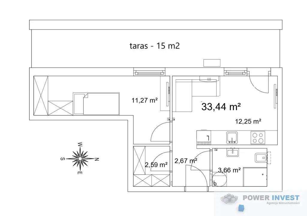 - taras 15 m²