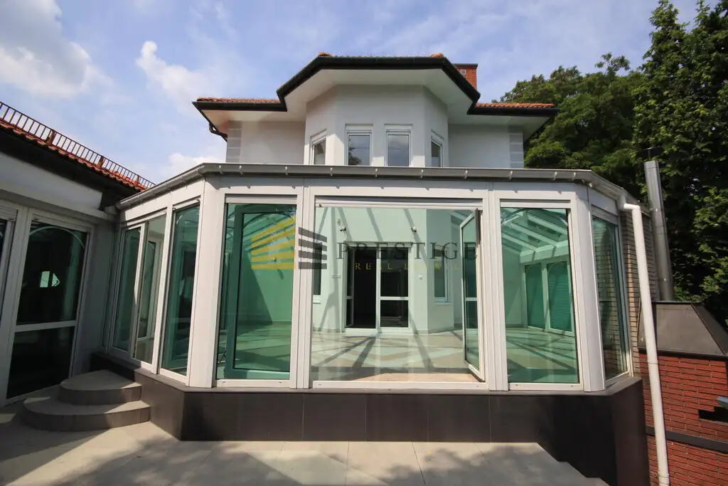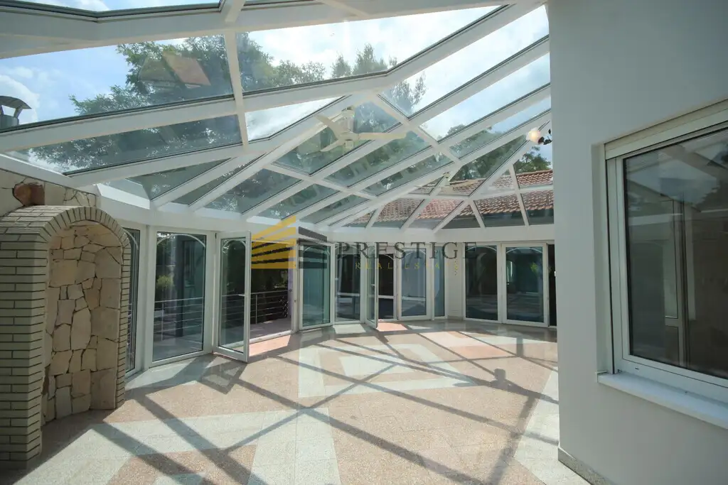 Ogród zimowy z wyjściem na taras, do ogrodu i basenu