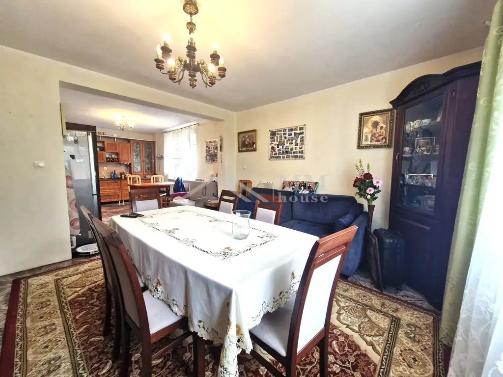 Budynek mieszkalny z jedną kondygnacją podziemną i dwiema nadziemnymi – łącznie 7 pokoi, 3 łazienki, 2 kuchnie, balkon, garaż, kotłownia , spiżarnia , strych.
