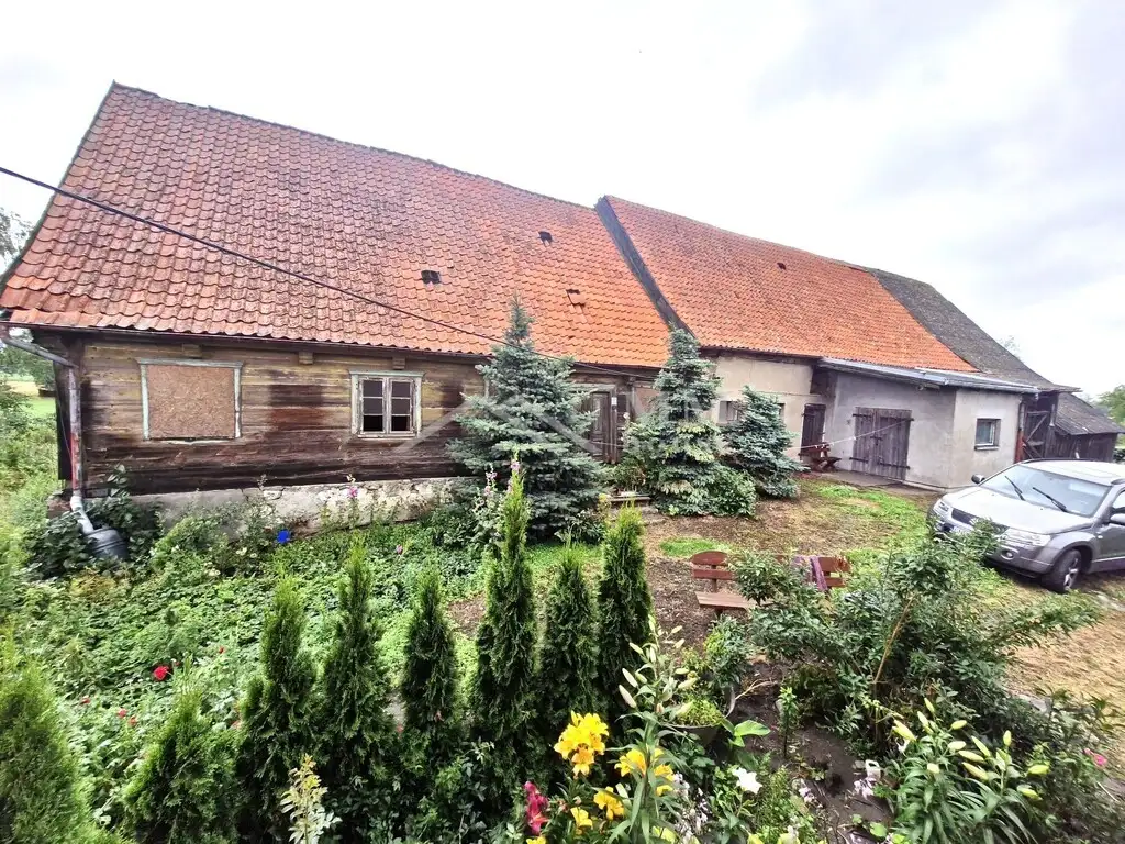 Na działce z domem znajdują się: budynek gospodarczy, drewniana stodoła, stary drewniany dom oraz ogród.