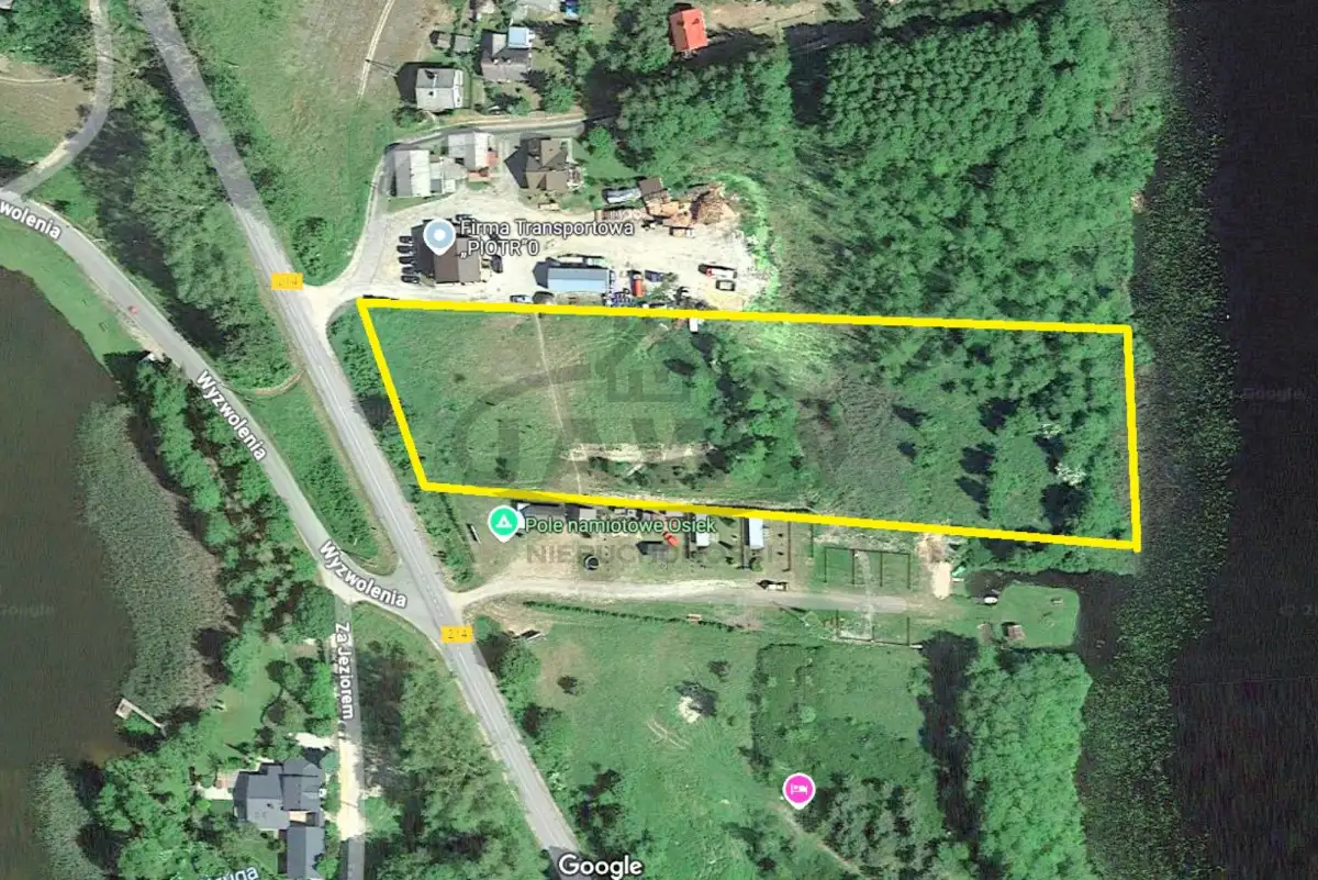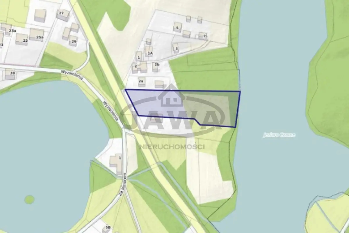 1 hektar pomiędzy dwoma jeziorami linia brzegowa