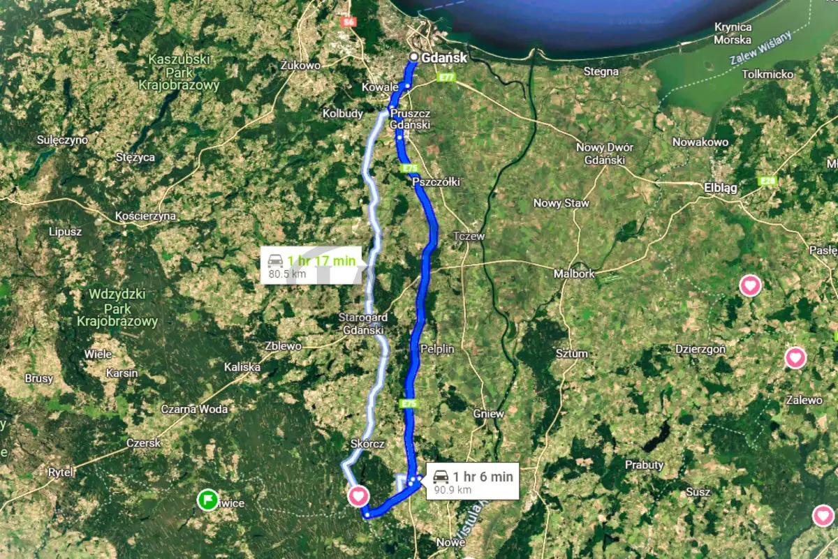 -> Zjazd bezpośrednio z drogi asfaltowej (drogi wojewódzkiej nr 214)