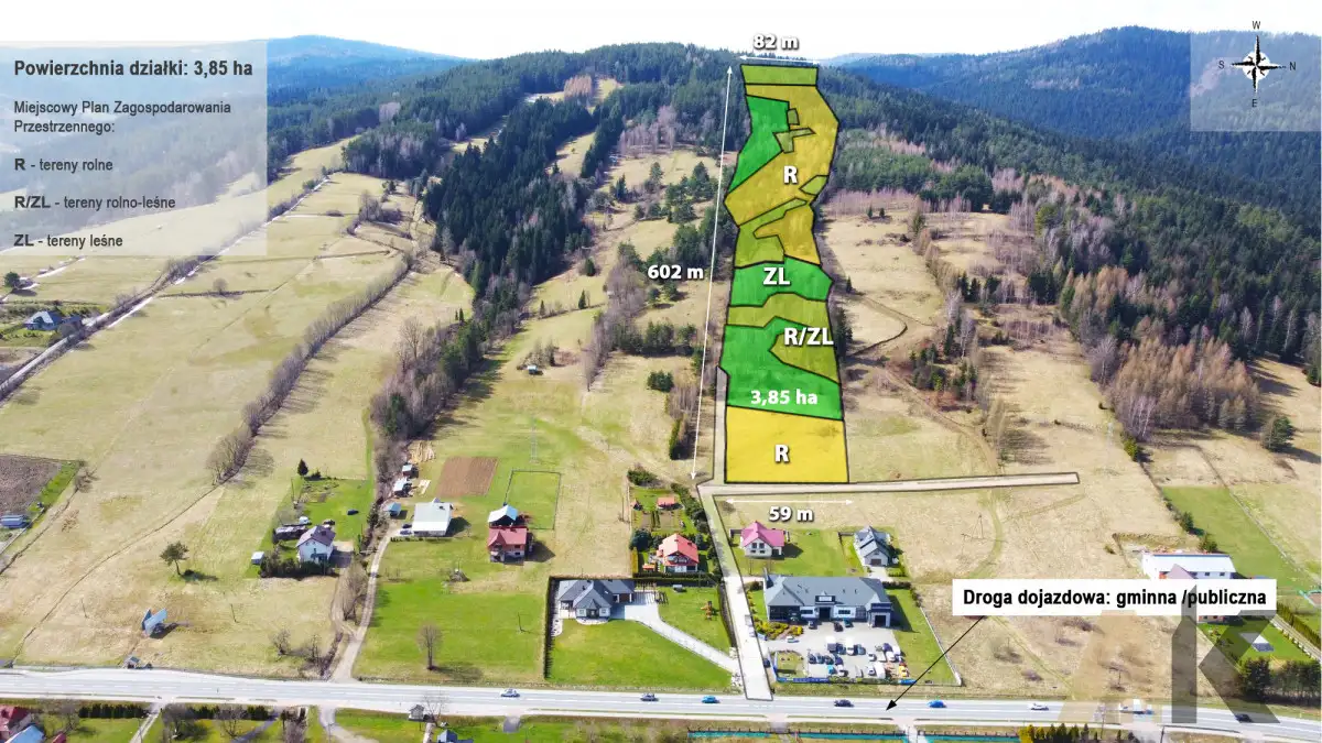 Dużym atutem nieruchomości jest powierzchnia (w jednym kawałku) oraz potencjał inwestycyjny - działka znajduje się na trasie Nowy Sącz-Krynica Zdrój.