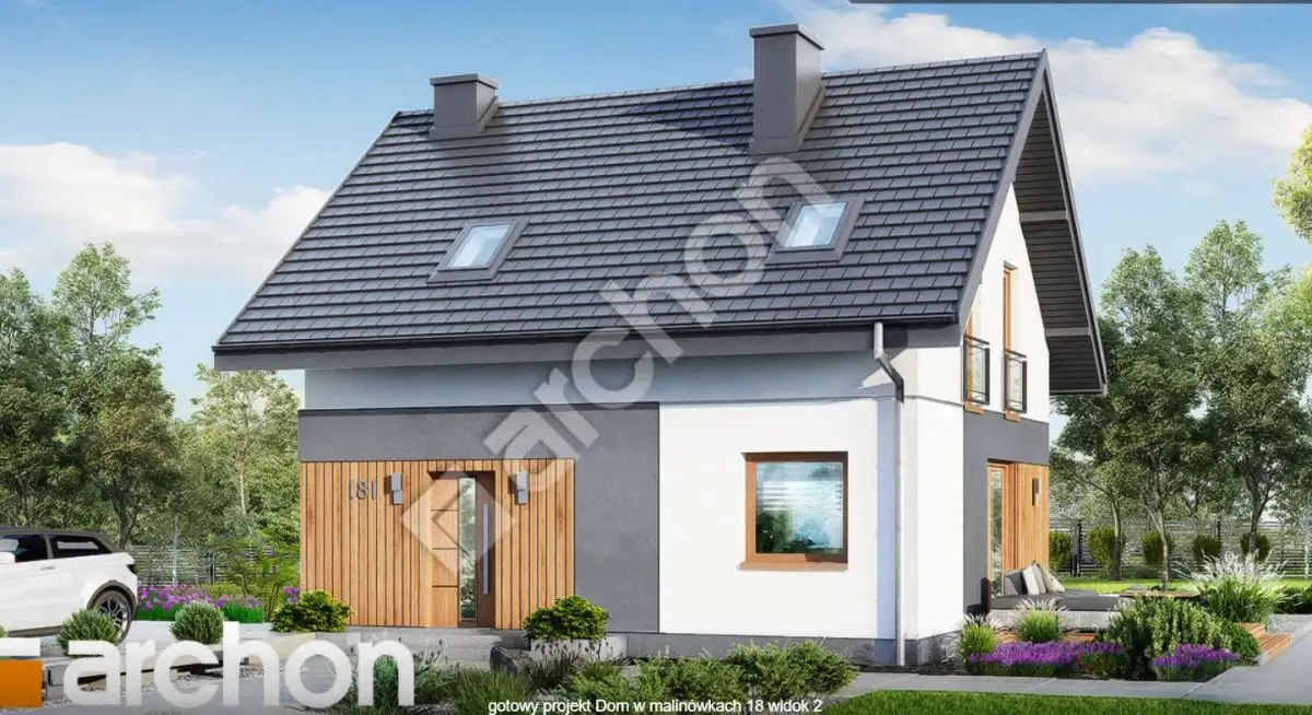 Istnieje możliwość budowy domu w granicy działki, łącząc budynek garażami i tworząc zabudowę bliźniaczą z sąsiednią nieruchomością.