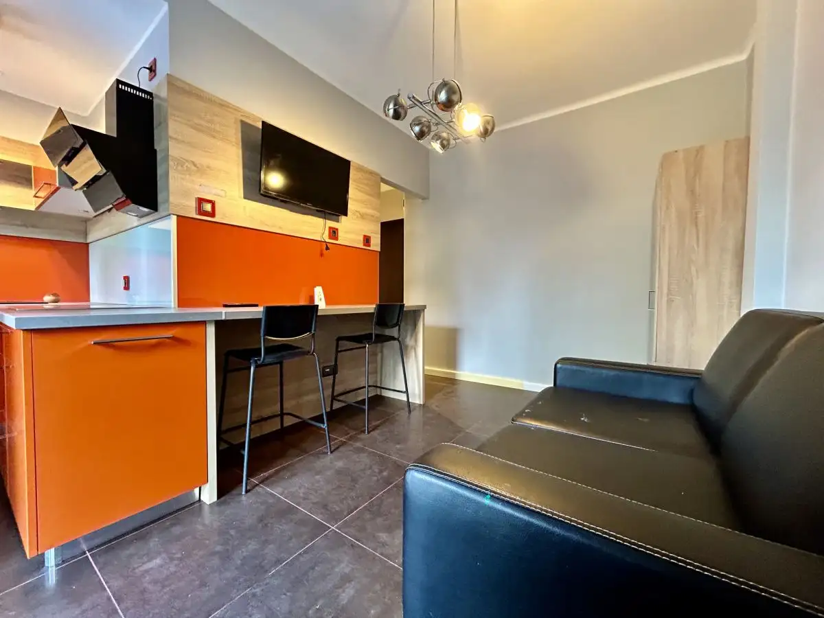 Układ: jednopokojowe z aneksem kuchennym i łazienką