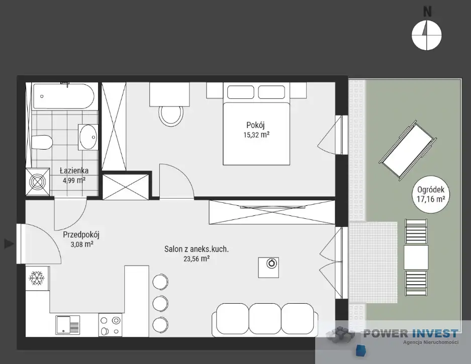 Pokój dzienny z aneksem kuchennym (23,56 m²)