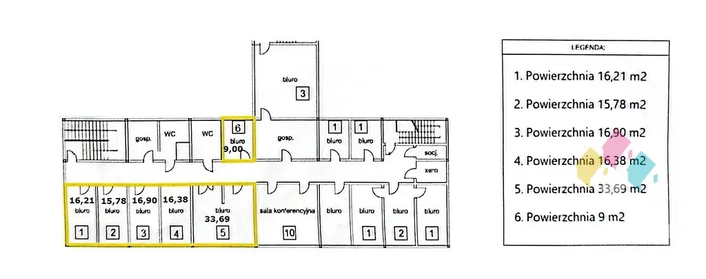 6 pomieszczeń biurowych :
