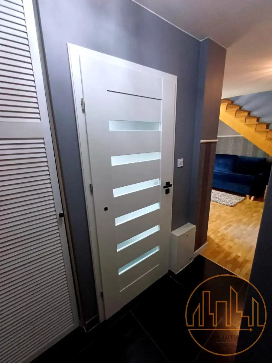 W łazience na 2. piętrze znajduje się pralka. Przy wejściu do mieszkania znajduje się szafa techniczna.