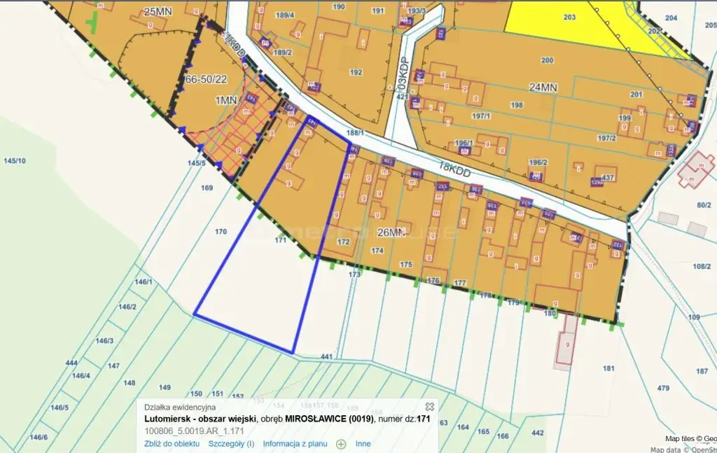 Teren objęty MPZP (symbol 26MN): ok. 20002200 m² teren zabudowy mieszkaniowej jednorodzinnej