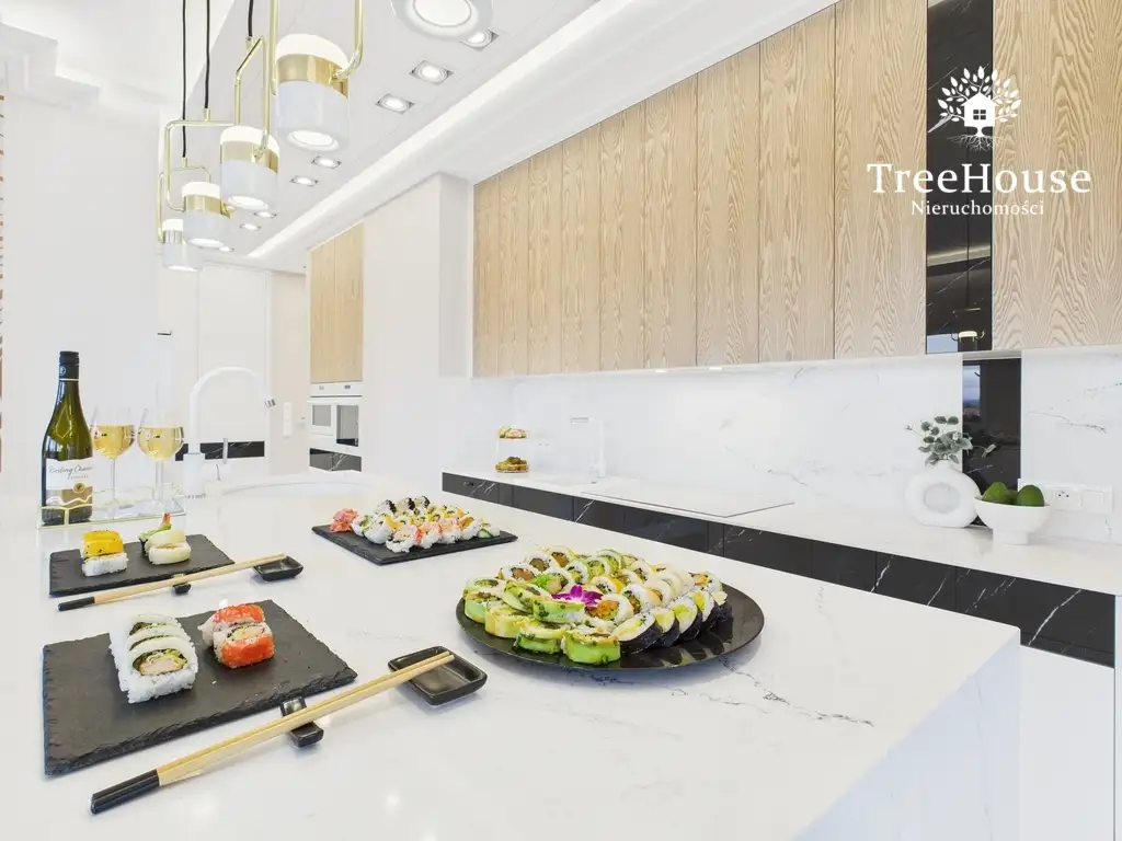 na podłodze położono deskę jesionową,w całym mieszkaniu zamontowano ogrzewanie podłogowe,w każdym pomieszczeniu zamontowano klimatyzację Mitsubishi,w mieszkaniu i na balkonach zamontowano rolety zewnętrzne,drzwi w mieszkaniu firmy PORTA, przestronna pergola tarasowa posiada orynnowanie, oświetlenie led, funkcję grzania, rolety i czujniki wiatru,do wykończenia wykorzystano takie materiały jak spieki kwarcowe, konglomerat kwarcowy, drewno, tapety, również tapety wodoodporne w łazienkach,najwyższej klasy armatura łazienkowa oraz sprzęt AGD,nieruchomość jest doskonale usytuowana względem stron świata - sypialnie od strony wschodniej, salon i taras od strony południowej i zachodniej,przeciwwłamaniowe drzwi wejściowe, wideodomofon, funkcje smartdomu,przepiękne, zróżnicowane oświetlenie w każdym pomieszczeniu.