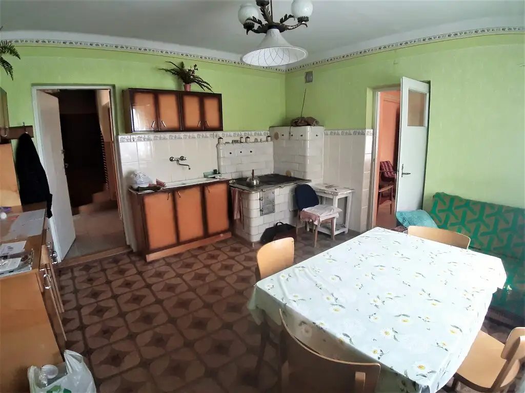 Dom ogrzewany jest z tzw. podkowy w piecu kaflowym w kuchni i przez 2 grzejniki c.o. w pokojach.