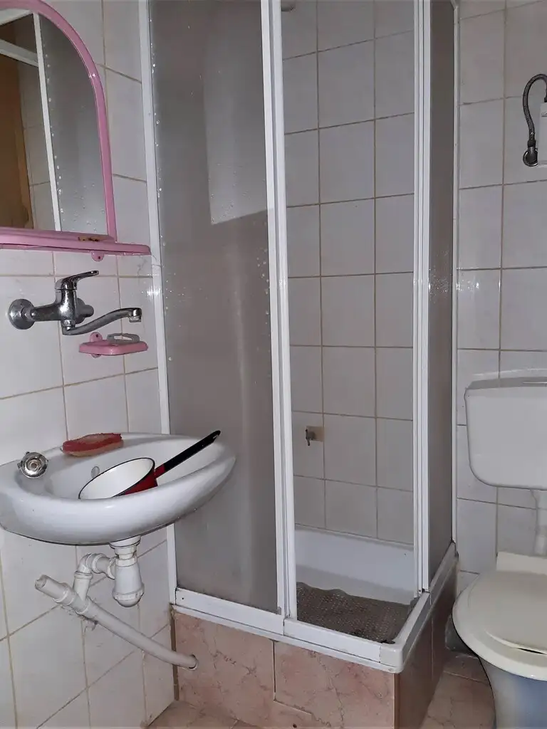 Na dole, w układzie przechodnim znajdują się: kuchnia i 2 pokoje, wiatrołap oraz łazienka z prysznicem.