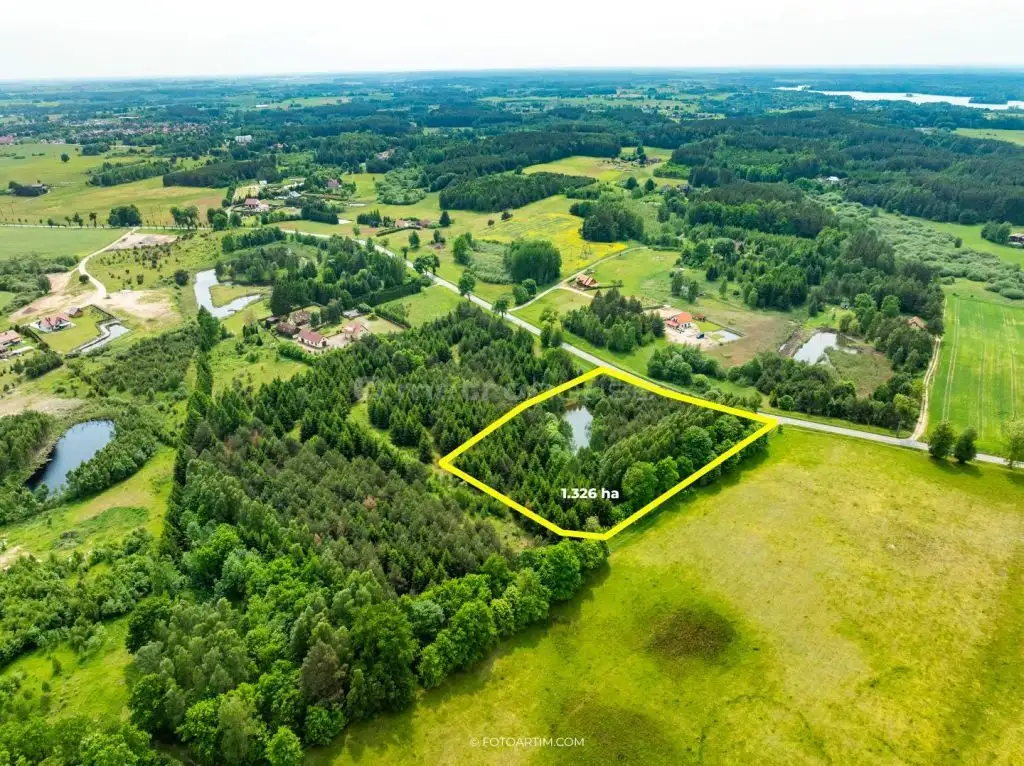 Działka budowlana o powierzchni 1 ha 3260 m² położona w Najdymowie. Okolice jeziora Dadaj.