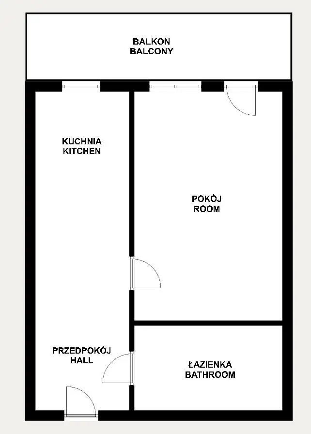 Pokoje: Pokój, kuchnia, przedpokój, łazienka, balkon