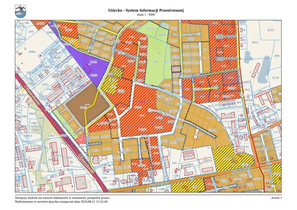 Nieruchomość jest objęta miejscowym planem zagospodarowania przestrzennego części terenów wsi Gajewo w gminie Giżycko zatwierdzonym Uchwałą Nr VIII/78/03 z dnia 14 maja 2003 roku, ogłoszoną w Dzienniku Urzędowym Województwa Warmińsko – Mazurskiego, nr 108, poz. 1446 z dnia 22 lipca 2003 roku. Zgodnie z powyższym planem przeznaczona jest pod teren zabudowy mieszkalnej jednorodzinnej i mieszkalno-usługowej, oznaczony symbolem 10MN/MNU.