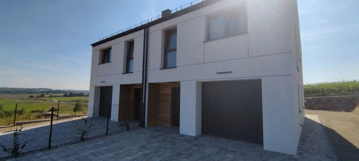 powierzchni całkowitej 123 m² (każda połówka), garaż oraz poddasze