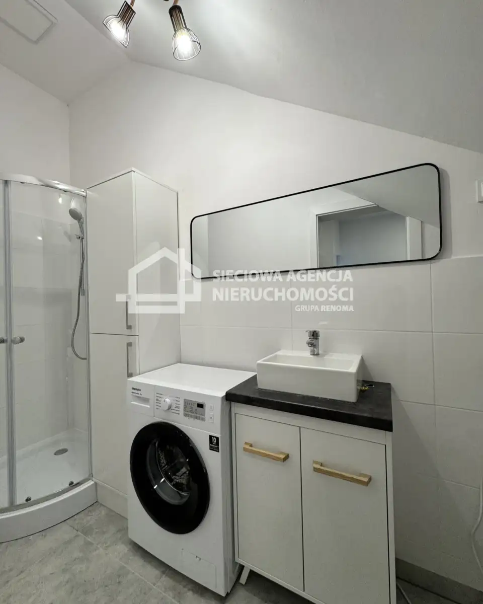 Nowe 1-pokojowe mieszkanie do wynajęcia o powierzchni 30m² w centrum Chwaszczynie przy ul. Gdyńskiej.W skład mieszkania wchodzi pokój z aneksem kuchennym, łazienka z kabiną prysznicową i WC, garderoba.