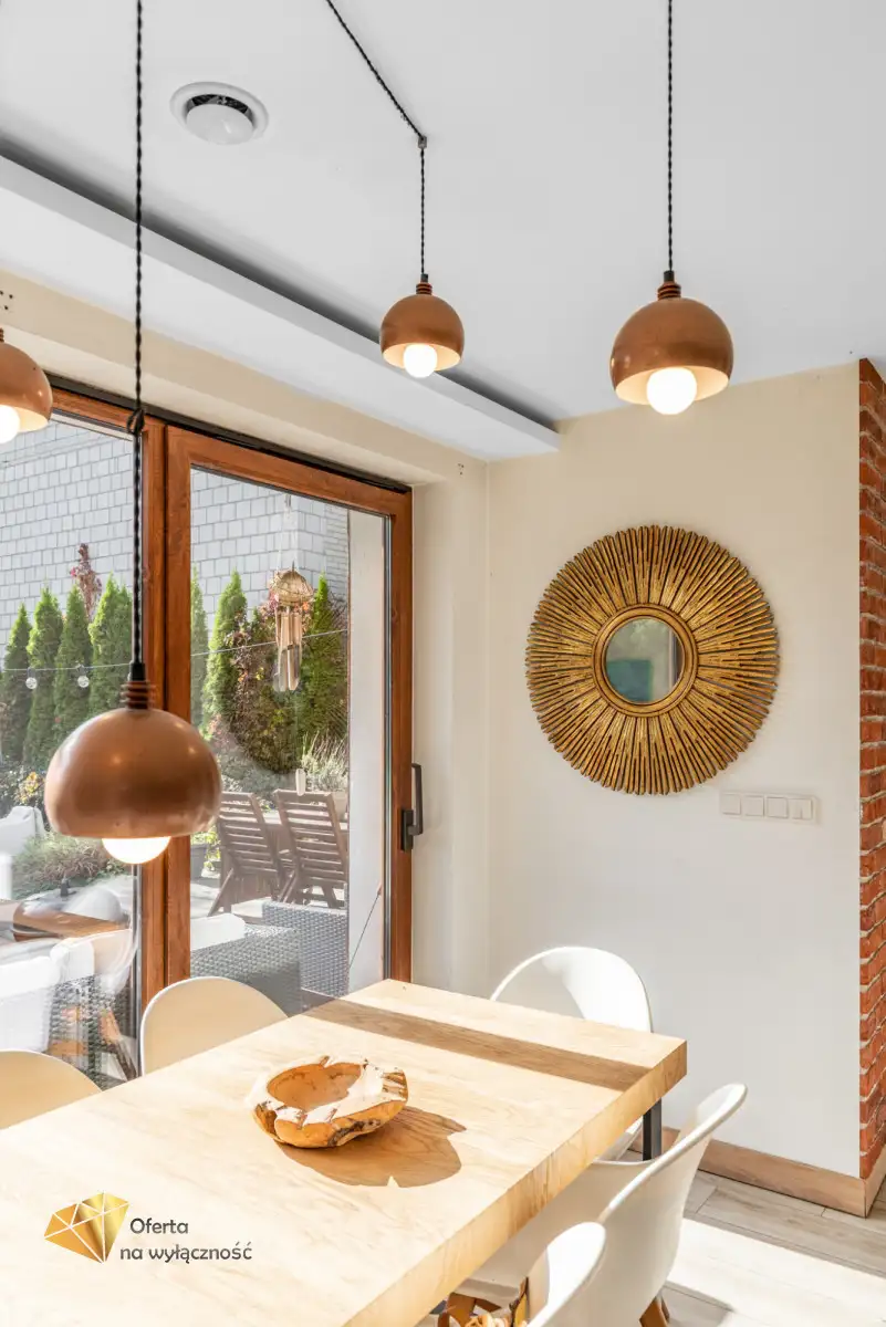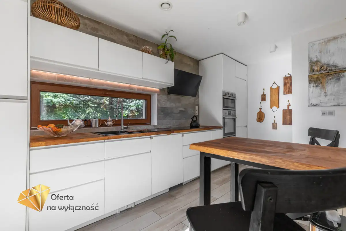 Niewątpliwie dużym atutem jest to, że dom jest gotowy do zamieszkania w pełni wyposażony. Zabudowa meblowa i sprzęt agd w cenie (płyta indukcyjna, piekarnik, lodówka, mikrofala, zmywarka).