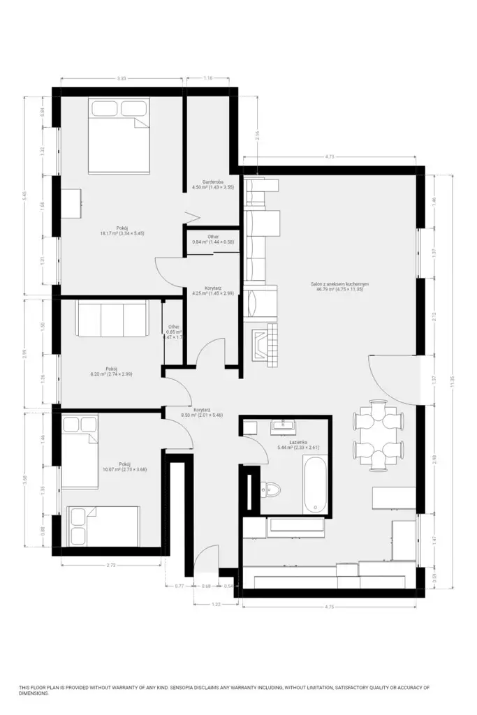 3 oddzielne pokoje, w tym jeden z osobną garderobą,