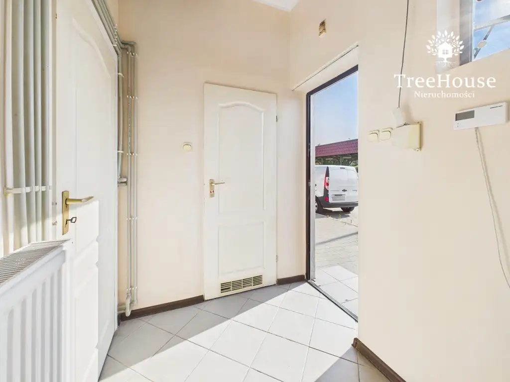 Dodatkowym udogodnieniem jest drugie wejście od strony podwórza, co umożliwia wygodne przyjmowanie dostaw lub oddzielenie obsługi klienta od zaplecza pracowniczego.