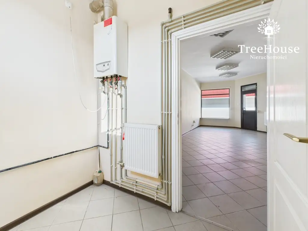 przestronnego pomieszczenia głównego z dużą witryną i wejściem od strony ulicy, które świetnie sprawdzi się jako sala sprzedażowa, gabinet usługowy czy biuro, pomieszczenia gospodarczego pełniącego funkcję zaplecza,toalety.