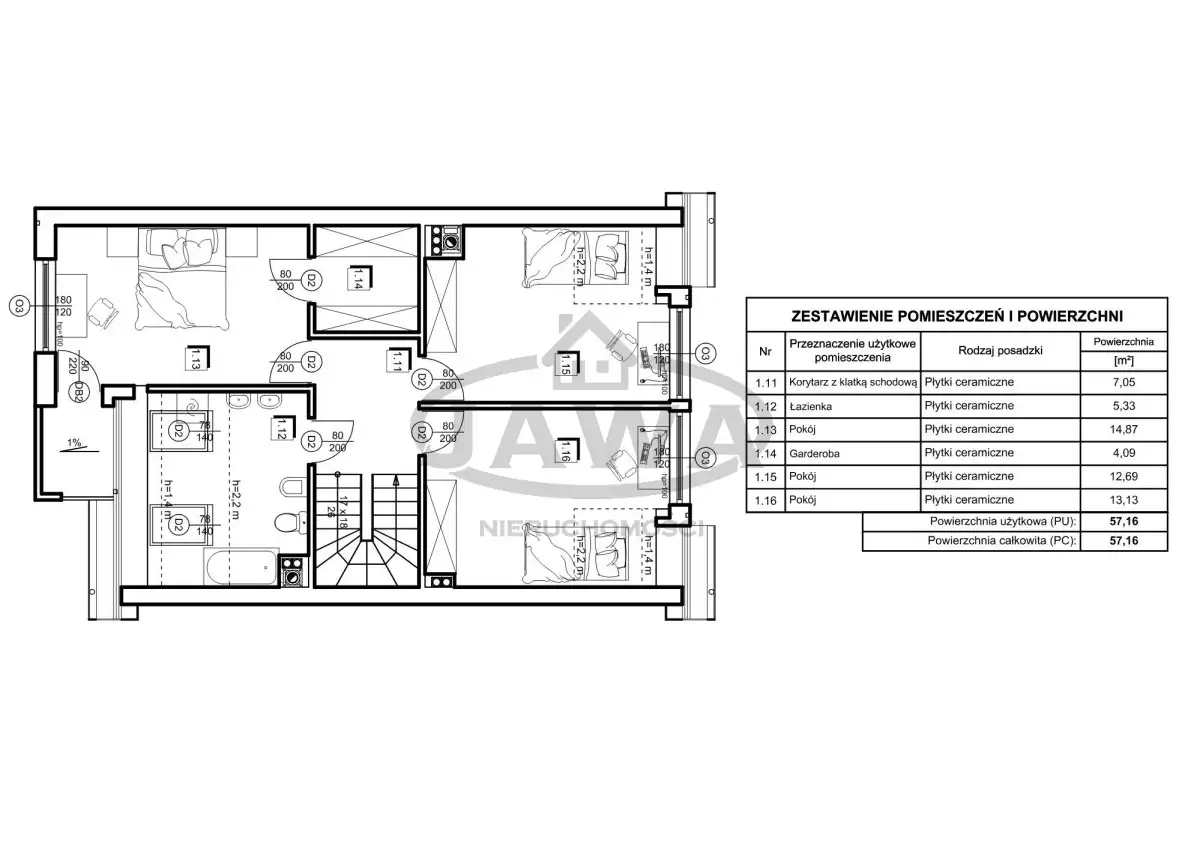- dach: klasyczna więźba dachowa pokryta dachówką ceramiczną