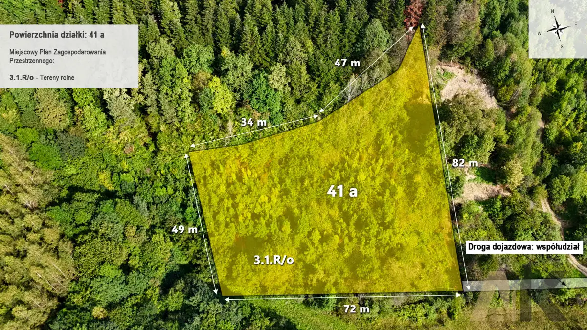 b/ budownictwo mieszkaniowe jednorodzinne, usługowe i budynki rekreacji indywidualnejw obrębie istniejącej działki siedliskowej,c/ usługi agroturystyczne,d/ obiekty małej architektury związane z rekreacyjnym zagospodarowaniem działki,3. Realizacja budynków wyłącznie jako wolnostojących.4. Wysokość zabudowy - do 9,0 m.5. Wysokość garaży, budynków gospodarczych, inwentarskich i inwentarsko-składowych -do 7,0 m.Powierzchnia działki: 4 100 m² ( 41 arów) - Kształt działki: nieregularnyUkształtowanie działki: nachylonaMedia:*Woda - do wykonania studnia