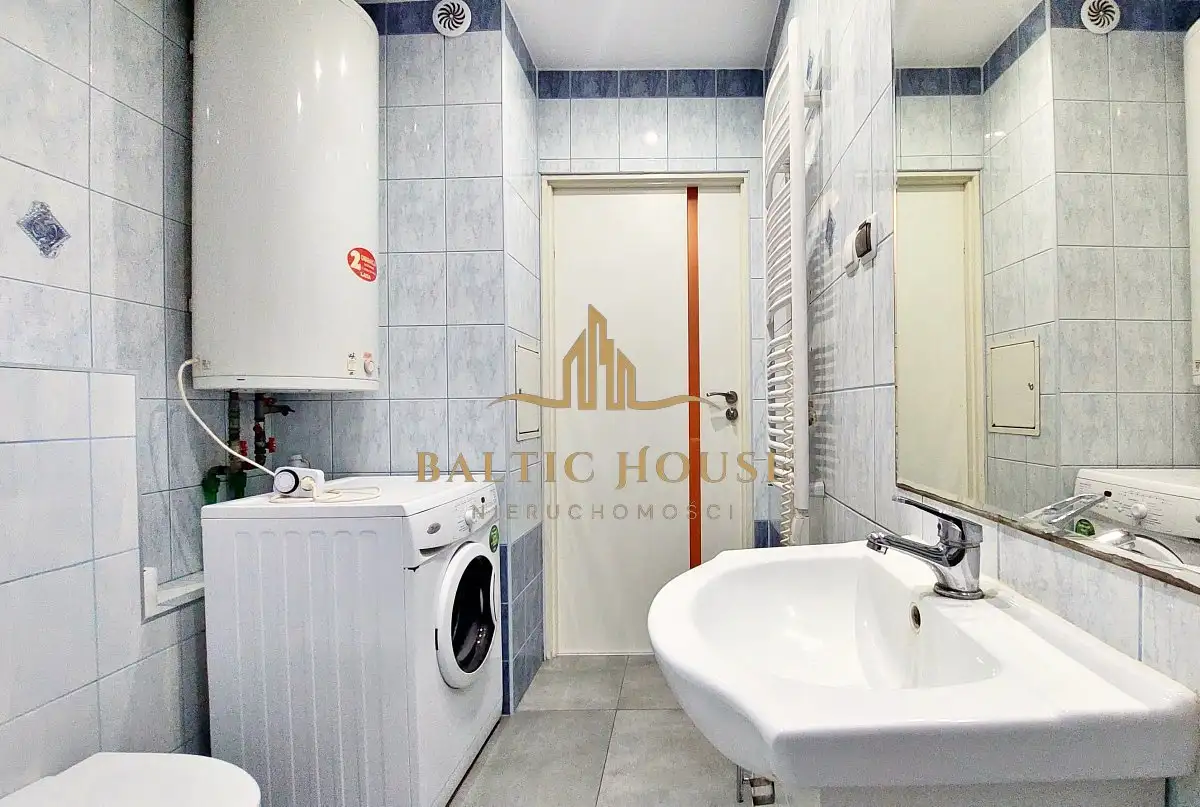 Mieszkanie 2 pokojowe z garderobą. Salon połączony z kuchnią posiada łącznie 3 okna. Sypialnia jasna i ustawna. W przedpokoju znajduje się garderoba oraz funkcjonalna zabudowa. Przestronna łazienka z wanną wyposażona jest w piec elektryczny z zasobnikiem ogrzewającym wodę.