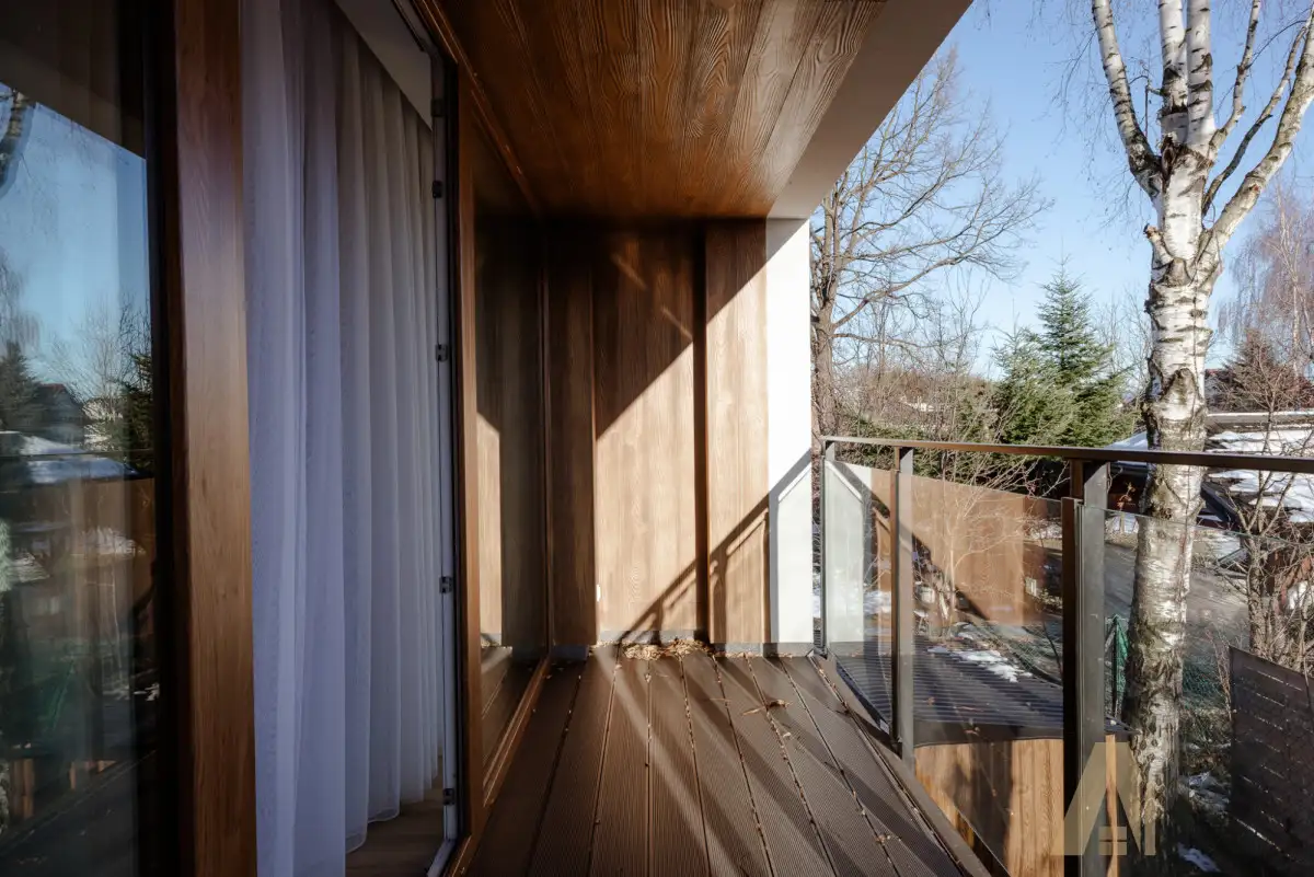 Mieszkanie składa się z dwóch przytulnych pokoi sypialnianych, garderoby, salonu z otwartą kuchnią, komfortowej prywatnej łazienki, niezależnej WC gościnnej oraz tarasów/balokonu o powierzchni ok. 10 m², który stanowi idealne miejsce na poranną kawę czy wieczorny odpoczynek po pracy. Wnętrze w pełni umeblowane.