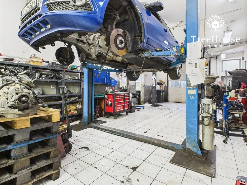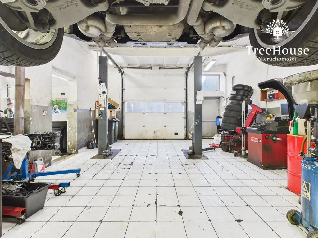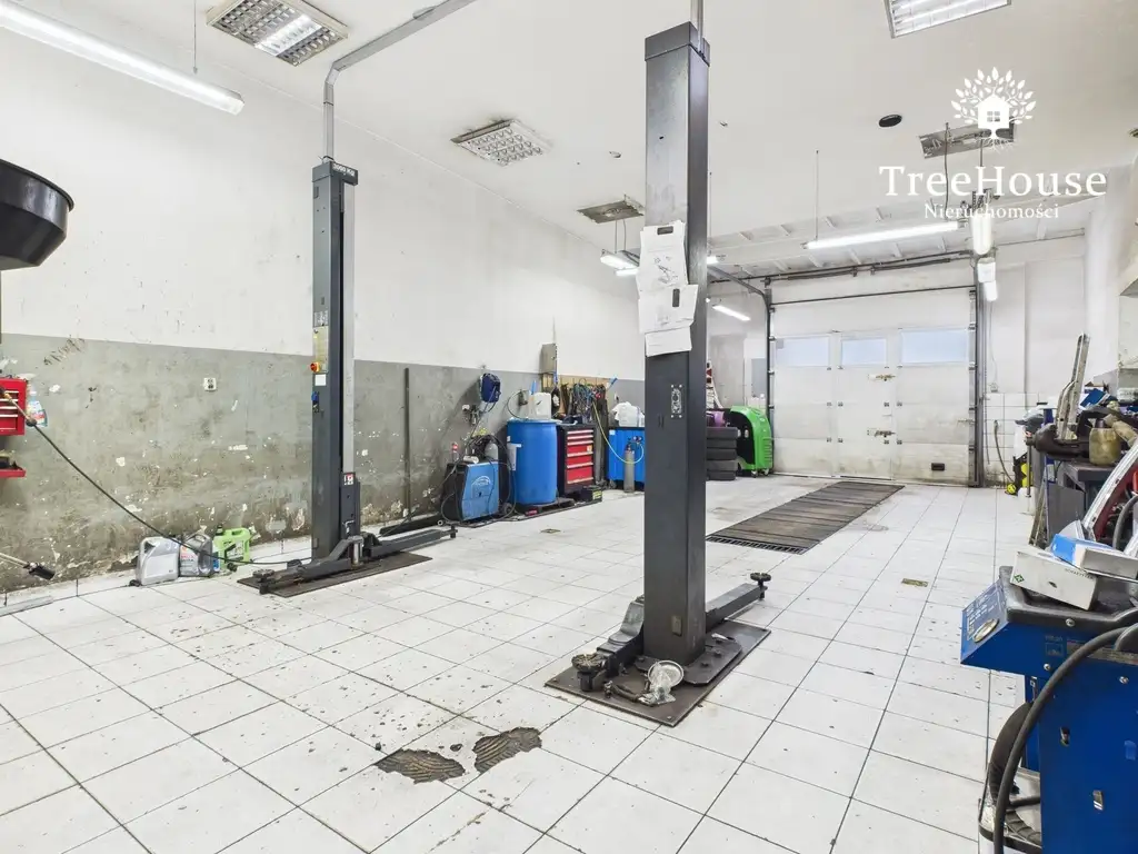 Obiekt jest obecnie wynajmowany jako warsztat samochodowy z czterema stanowiskami serwisowymi (sprzedaż bez wyposażenia warsztatowego).