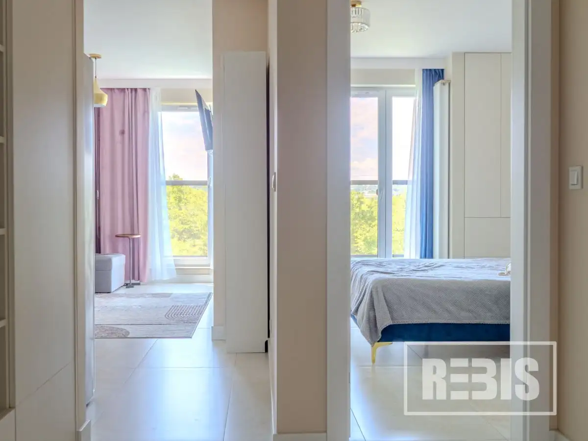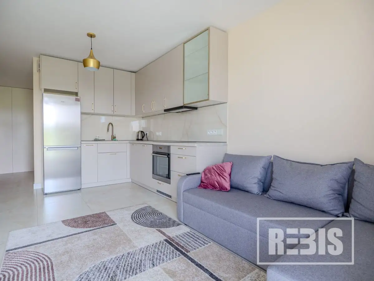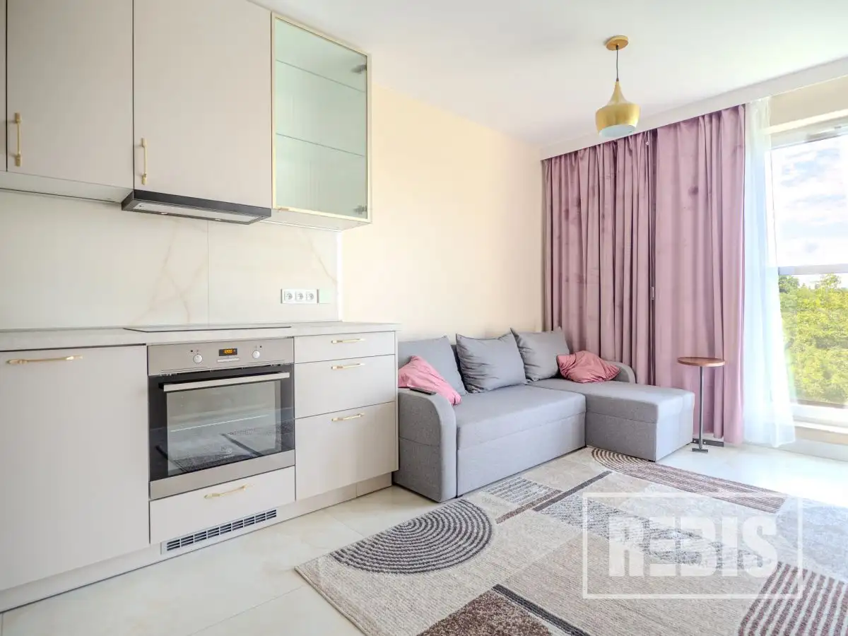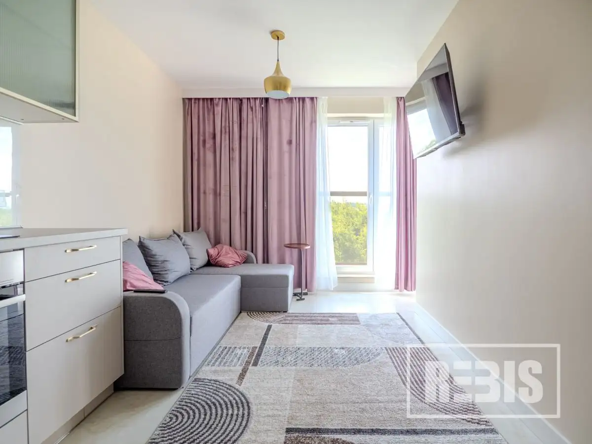 PROPERTY DESCRIPTIONThis cozy apartment offers modern interiors, including an elegant bathroom with original mosaic tiles and a bright kitchen with minimalist-style cabinetry. The bedroom features a comfortable bed with an upholstered headboard and a roomy closet. Large windows provide plenty of natural light and a beautiful view of the green neighborhood. The living room combined with a kitchenette creates ideal conditions for daily relaxation. An additional advantage is the location - the bus stop is only 150 meters from the apartment, which provides a convenient connection with the rest of the city.