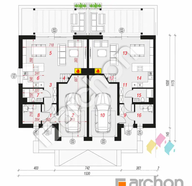 Optymalny rozkład domu pozwalający na komfort funkcjonowania zarówno pary jak i rodziny. Parter ma służyć jako część dzienna dla domowników, a poddasze jako część sypialniana.