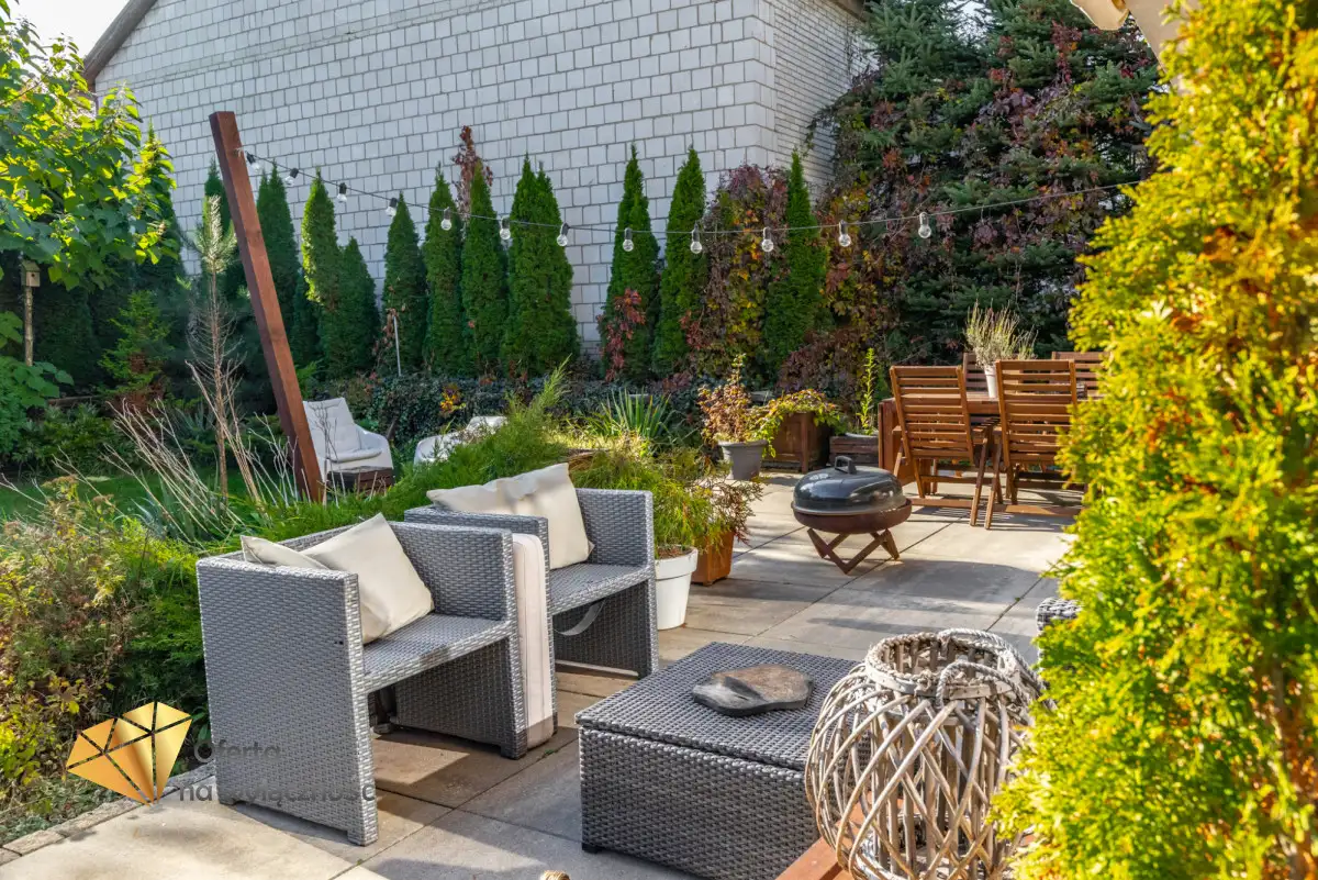 O wyjątkowości tego miejsca stanowi w znacznym stopniu duża działka. Można tu zarówno odpocząć od miejskiego zgiełku jak i oczyścić głowę po ciężkim dniu. Liczne nasadzenia: drzewa i krzewy owocowe, tuje, iglaki, brzozy, dęby, sosny a nawet własny lasek tworzą niesamowity klimat spokoju i harmonii. W zakątkach ogrodu znajdziemy miejsce na warzywnik, altanę, miejsce na ognisko czy basen.