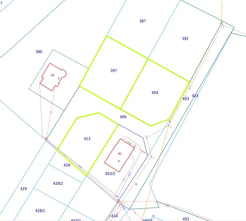 - dz. 404 i 413 ze ściętym rogiem. Topografia korzystna, teren płaski o nieznacznym pochyleniu w kierunku północnym. Działki mają bezpośredni dostęp do wewnętrznej drogi gminnej. Sąsiednie nieruchomości uzbrojone w sieć elektryczną, wodociągową oraz kanalizacyjną