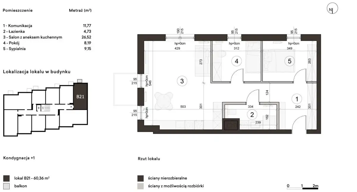 - Sypialnia o pow. 9,15 m² i 8,19 m²
