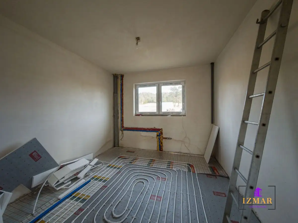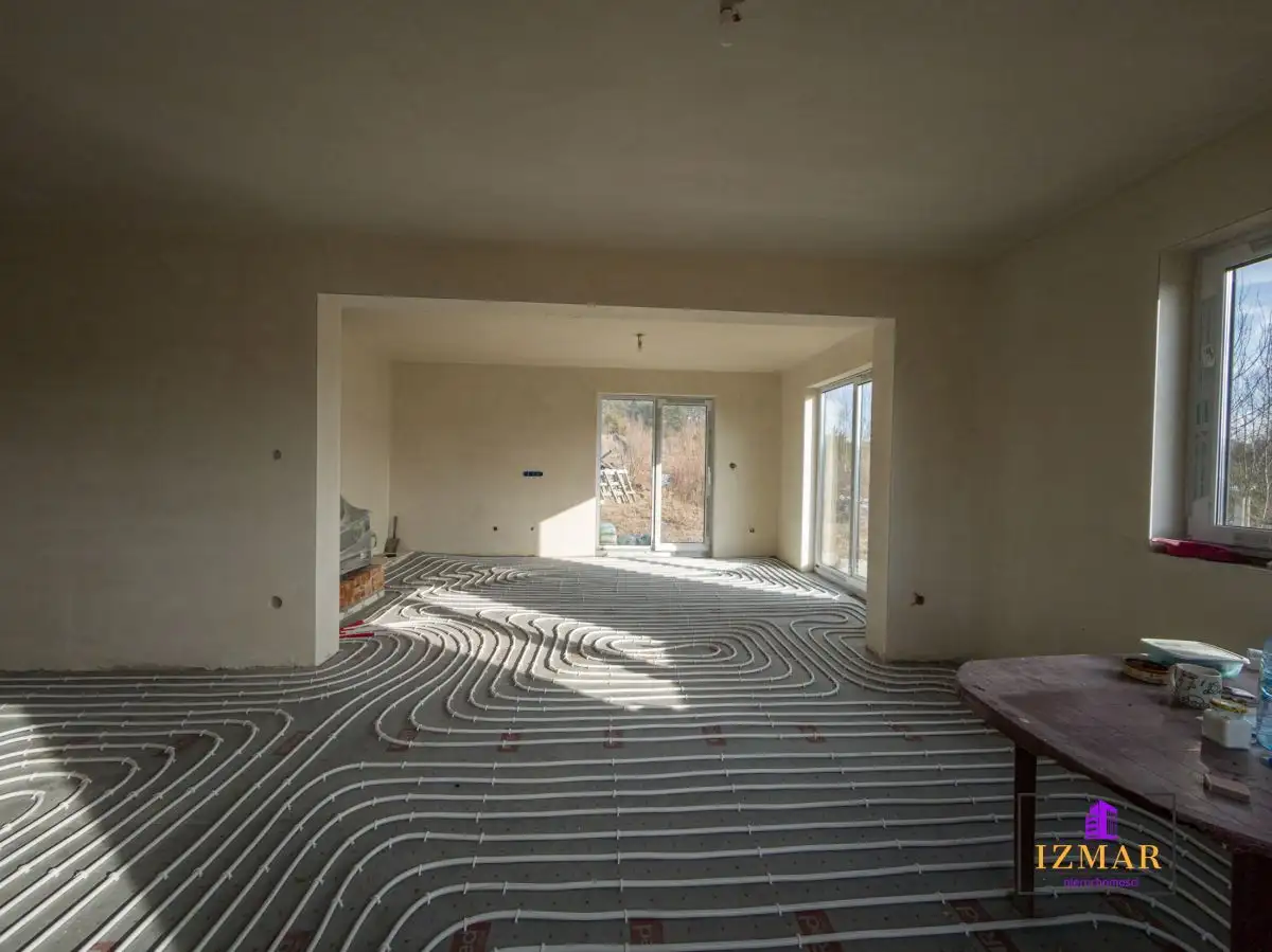 W domu zostało położone rozprowadzenie do ogrzewania podłogowego, tynki, instalacje wodno-kanalizacyjne, okna trzyszybowe.
