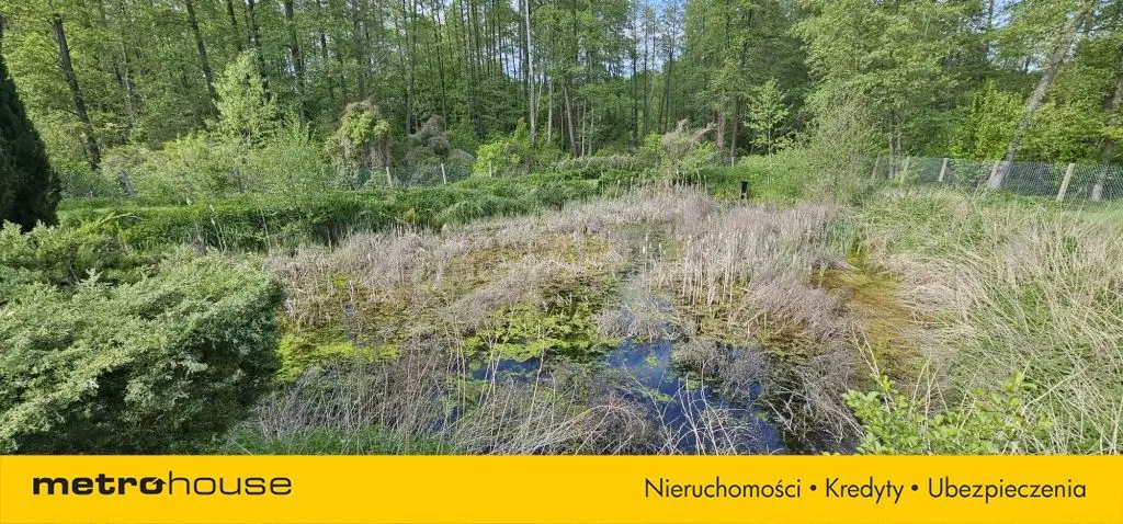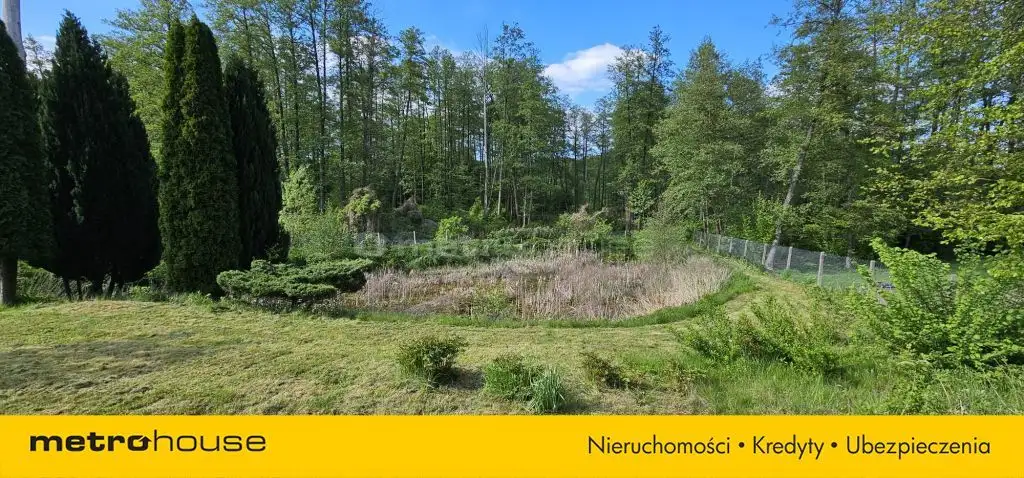 Dom położony na dużej, prostokątnej działce o powierzchni 4600m². Działka ogrodzona, granicząca od tyłu z lasem. W tylnej części działki znajduje się również niebywały atut - 120-metrowy staw, z trzema własnymi, naturalnymi źródłami. Staw obecnie wymaga renowacji, ale będzie to prawdziwa przyjemność dla miłośników wędkowania i relaksu nad wodą.