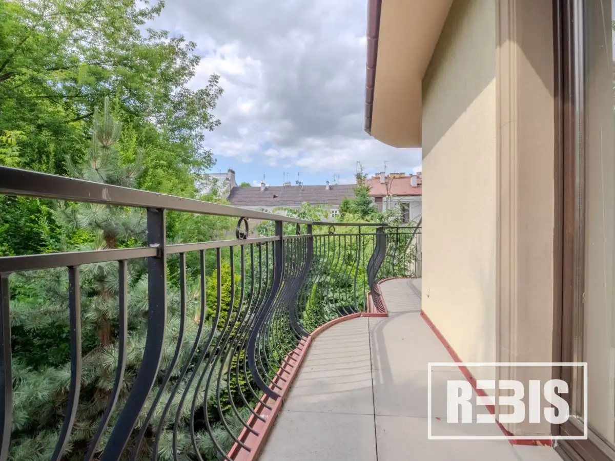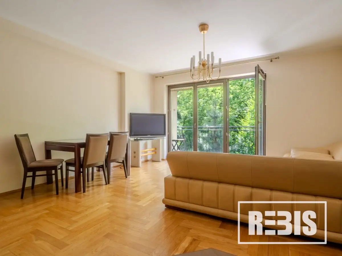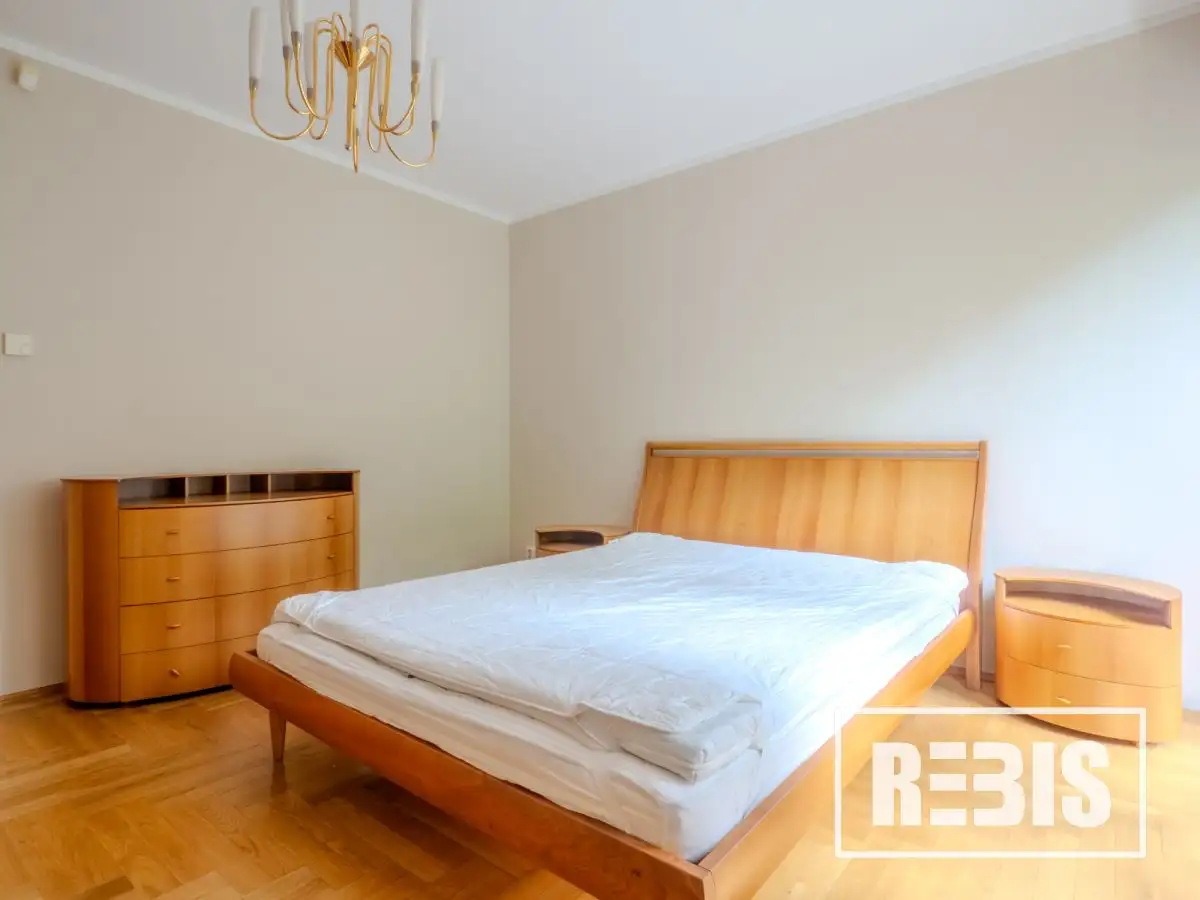 The windows of the apartment overlook a western courtyard with beautiful greenery, which further emphasizes the atmosphere of tranquility. The interior has been finished to a high standard, including parquet floors with underfloor heating and high-end appliances in the kitchen, such as microwave, oven, large refrigerator and electric hob.