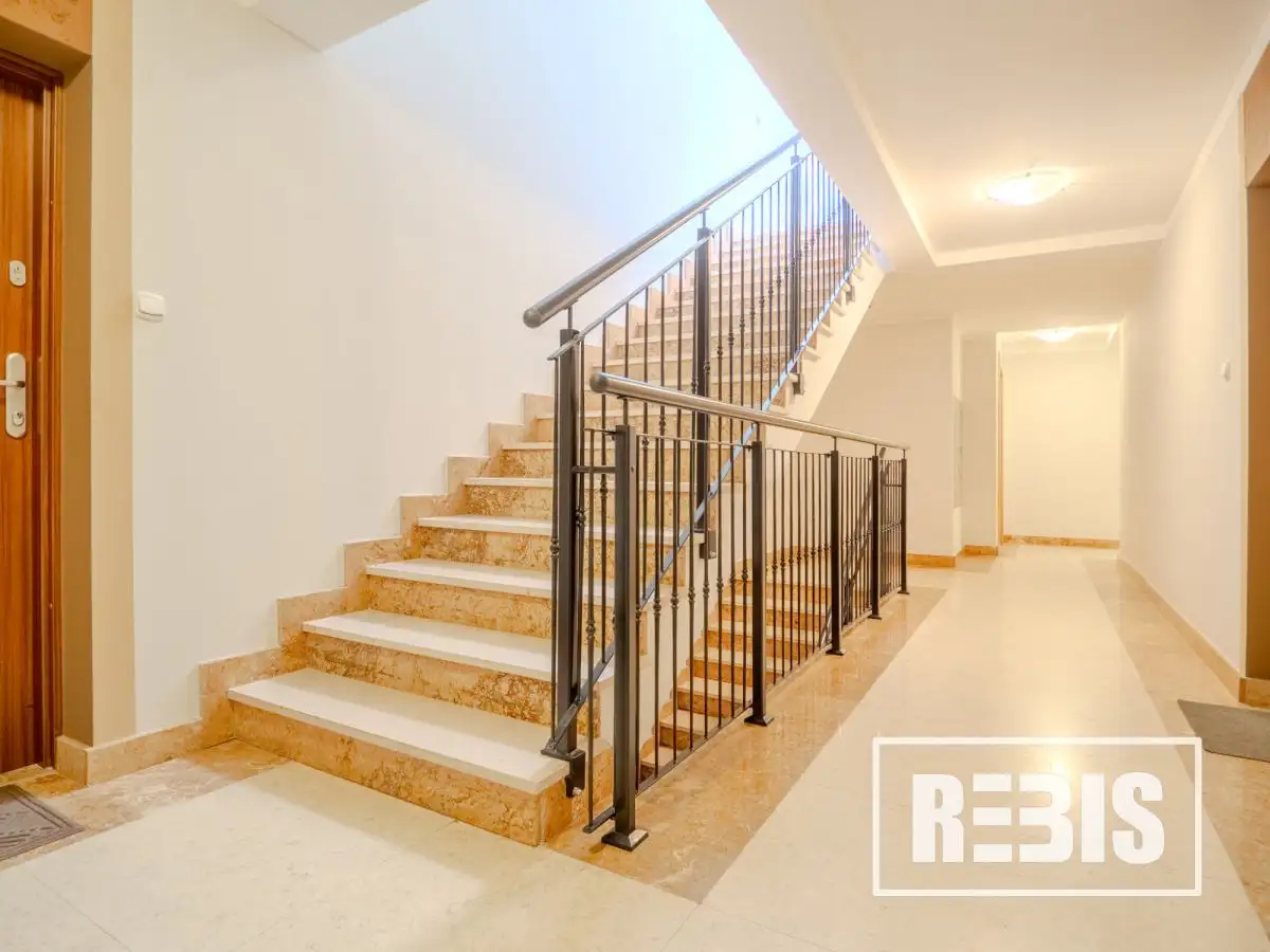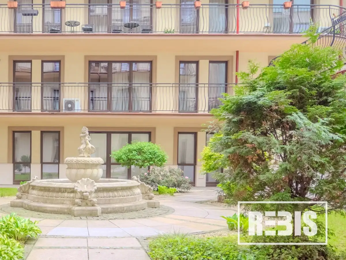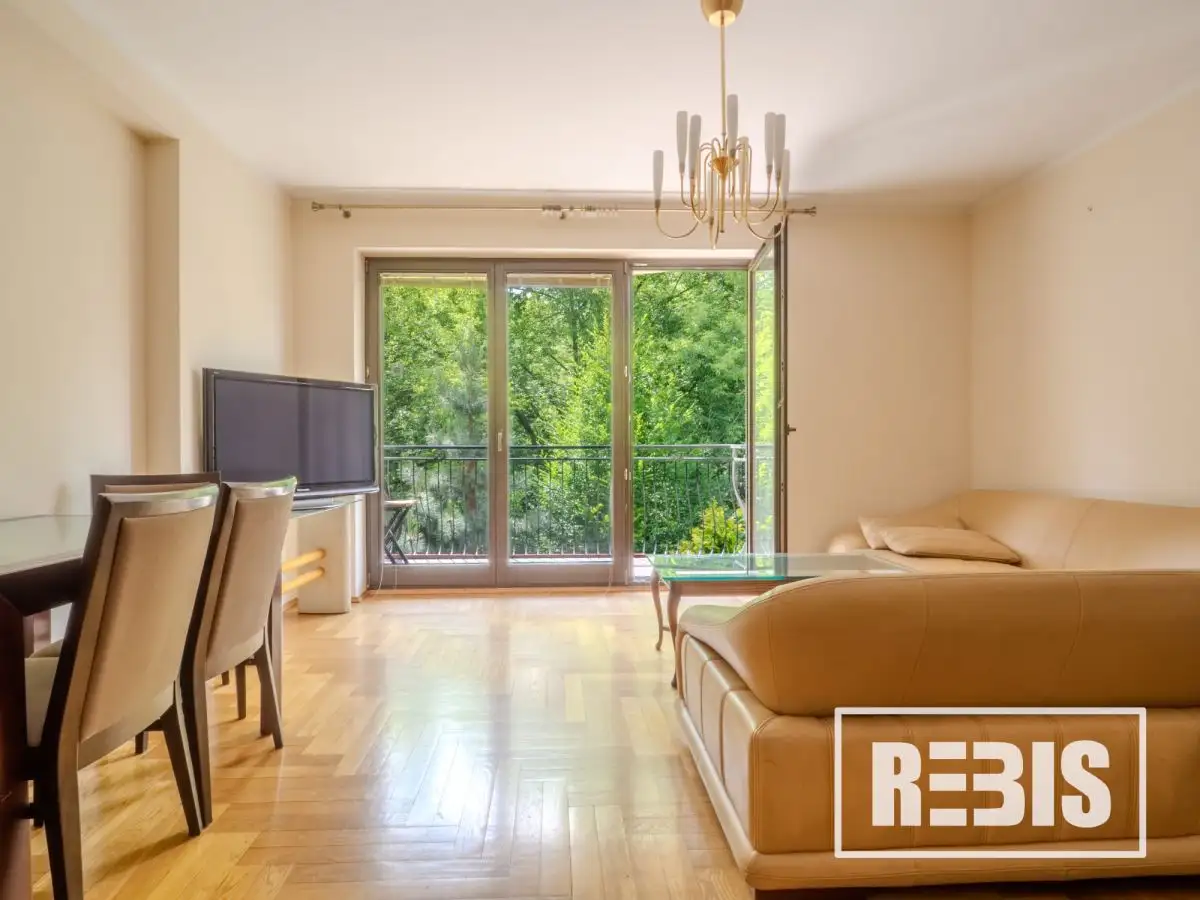 The windows of the apartment overlook a western courtyard with beautiful greenery, which further emphasizes the atmosphere of tranquility. The interior has been finished to a high standard, including parquet floors with underfloor heating and high-end appliances in the kitchen, such as microwave, oven, large refrigerator and electric hob.