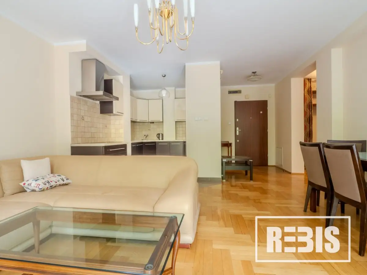 Okna apartamentu wychodzą na zachodni dziedziniec z piękną zielenią, co dodatkowo podkreśla atmosferę spokoju. Wnętrze zostało wykończone w wysokim standardzie, zastosowano m.in. parkiety z ogrzewaniem podłogowym oraz wysokiej klasy sprzęty AGD w kuchni, takie jak mikrofalówka, piekarnik, duża lodówka oraz płyta elektryczna.