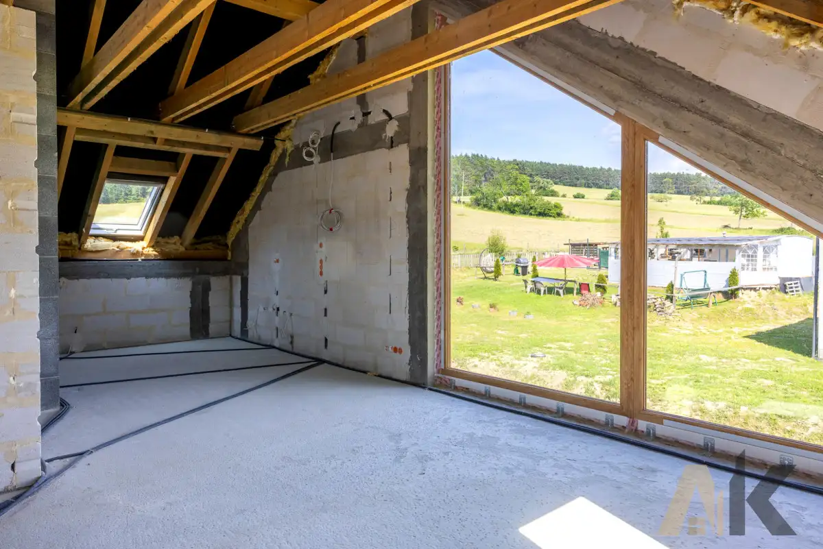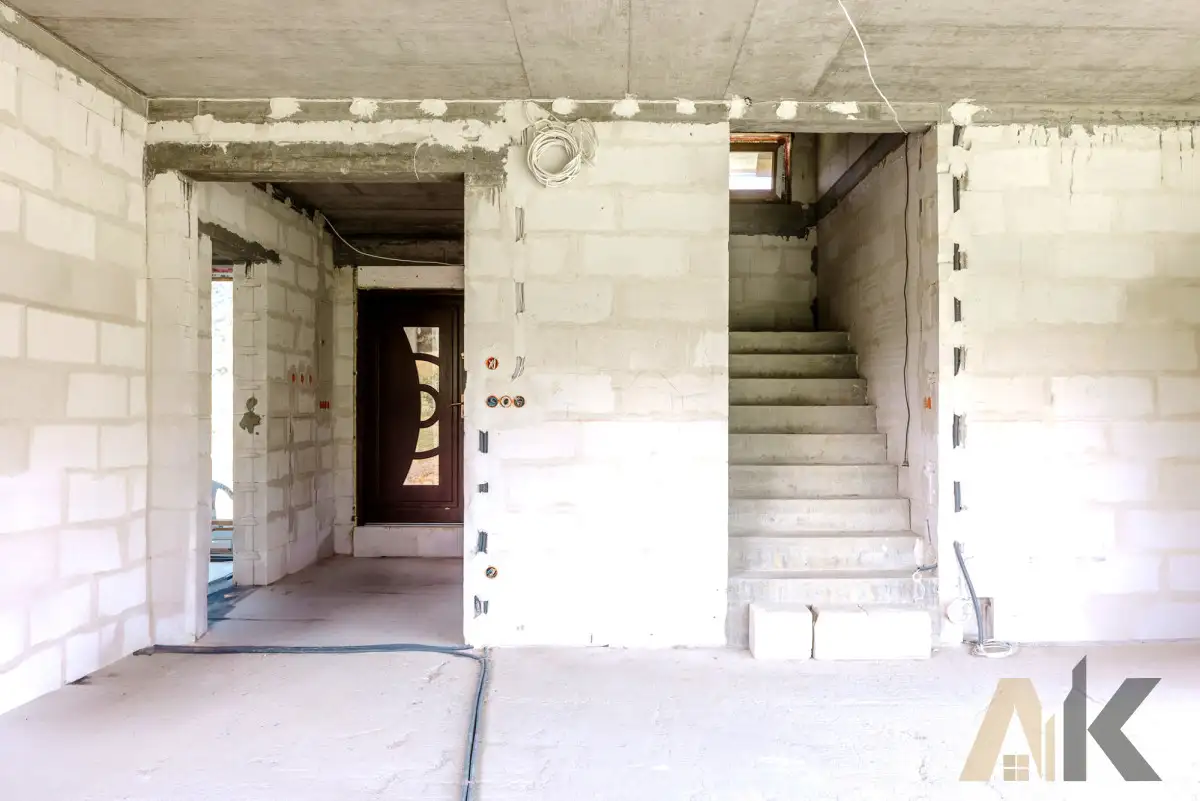Dom mieszkalny (ok. 300 m², stan surowy zamknięty) z częścią prywatną oraz częścią przeznaczoną pod