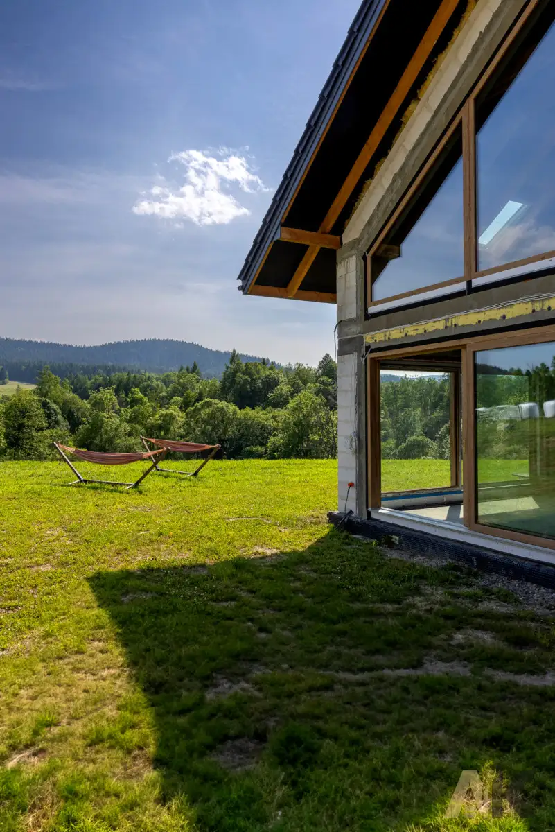 Duże przesuwne okna z ekspozycją na wschód i południowy zachód