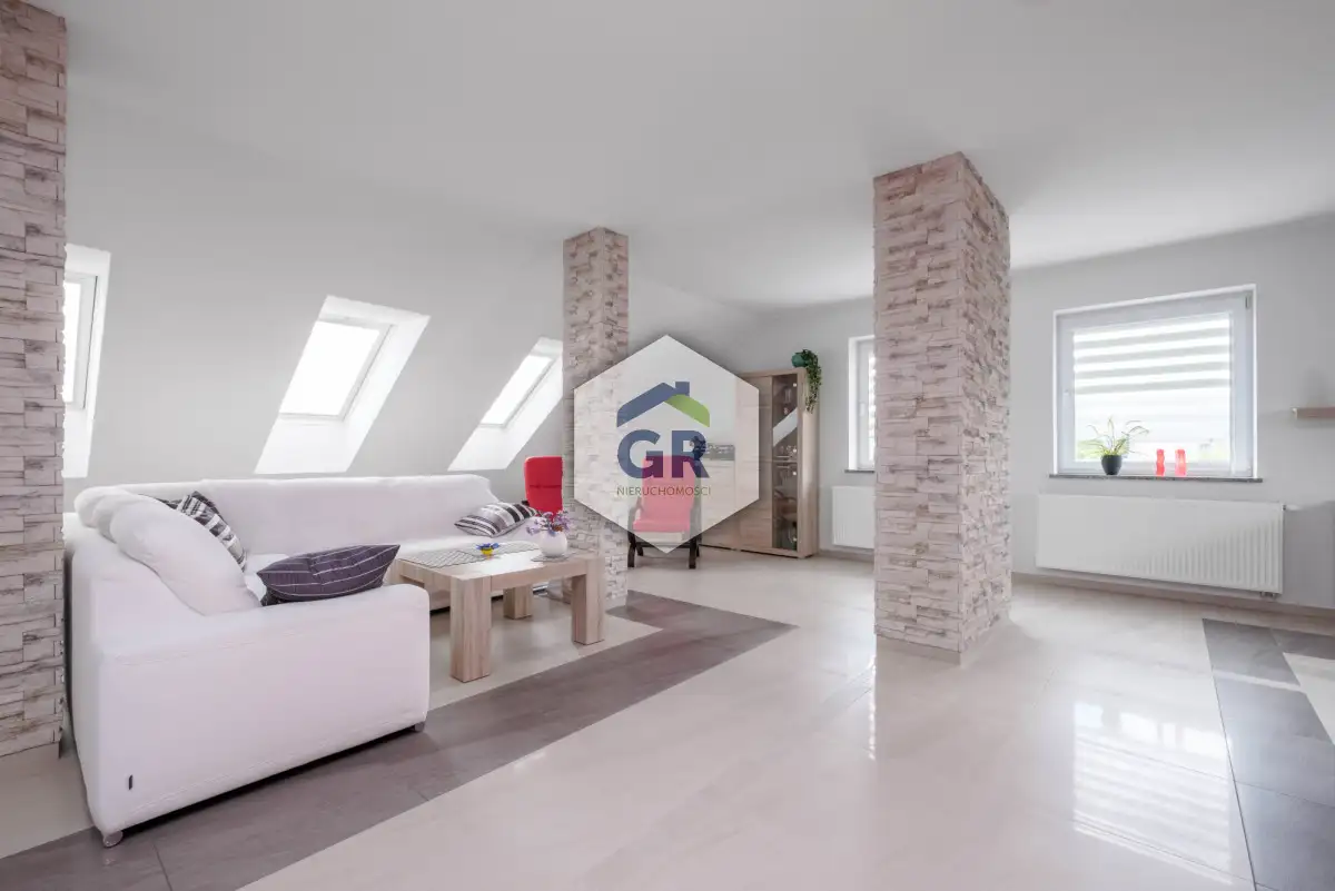 Na poddaszu znajduje się przestronny salon z aneksem kuchennym (57,79 m²), sypialnia (13,31 m²), pokój (5,72 m²) i gabinet (4,08 m²), łazienka (7,37 m²).