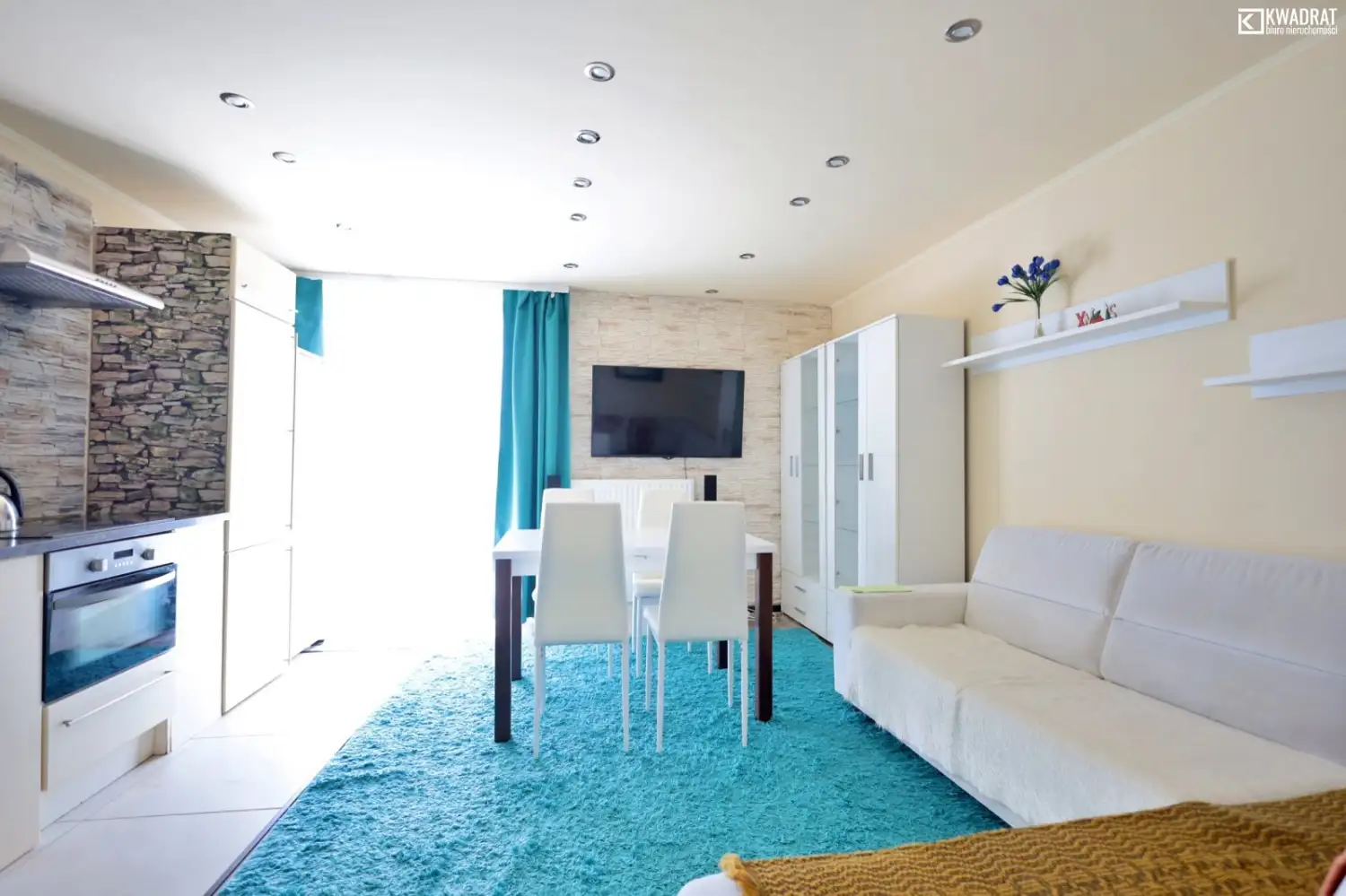 Salon z aneksem kuchennym: 27,80 m² - przestronne wnętrze z wyjściem na balkon, co zapewnia dużo naturalnego światła