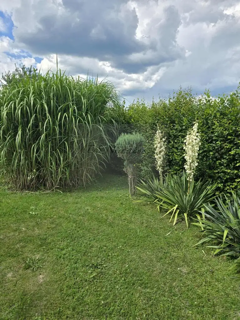 III. Lawn with numerous plantings (behind the driveway), in this part there is a woodshed and photovoltaic panels,