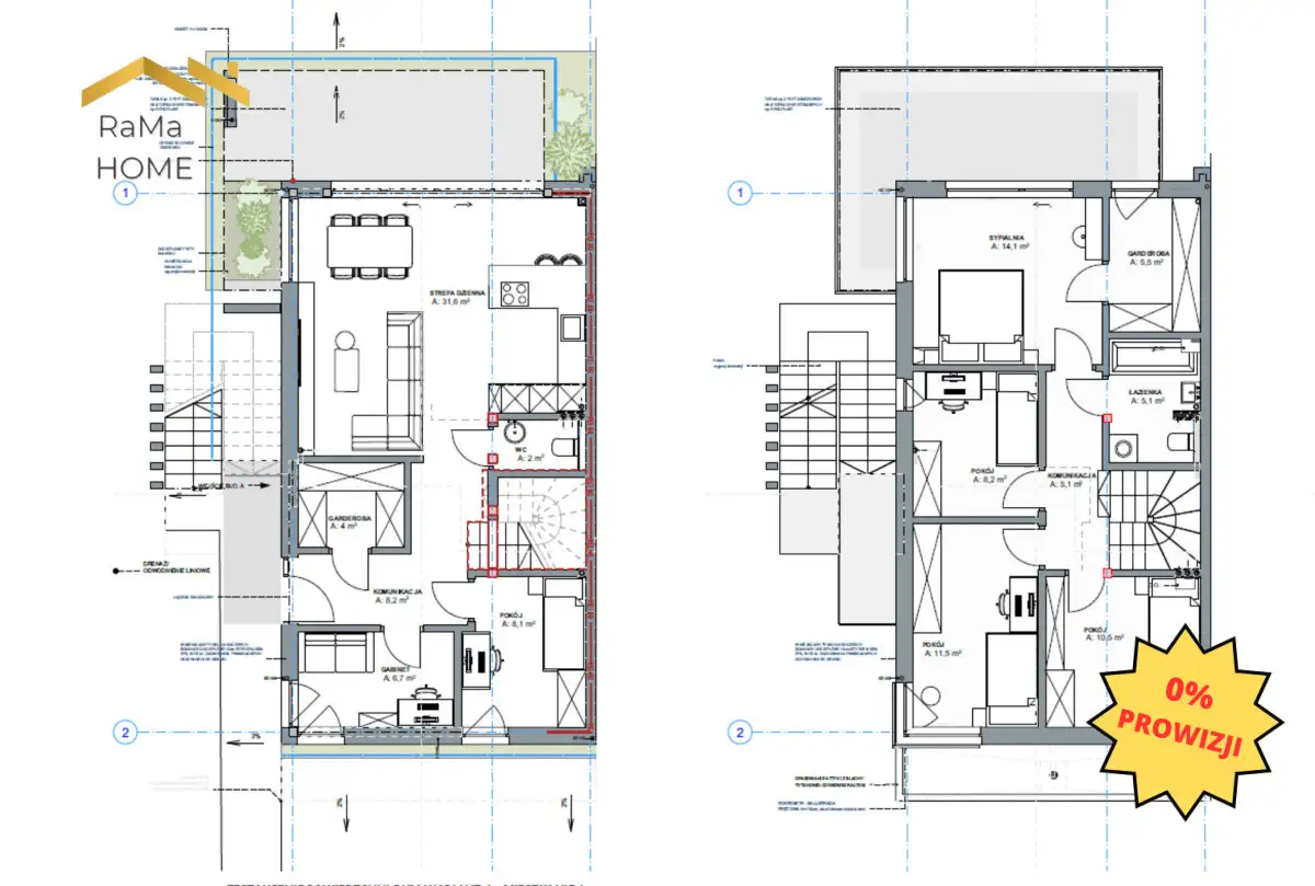 7 pokojowe, funkcjonalne, dwu poziomowe mieszkanie zlokalizowane jest na parterze i pierwszym piętrze nowej inwestycji składającej się z 6 budynków 2 lokalowych.
