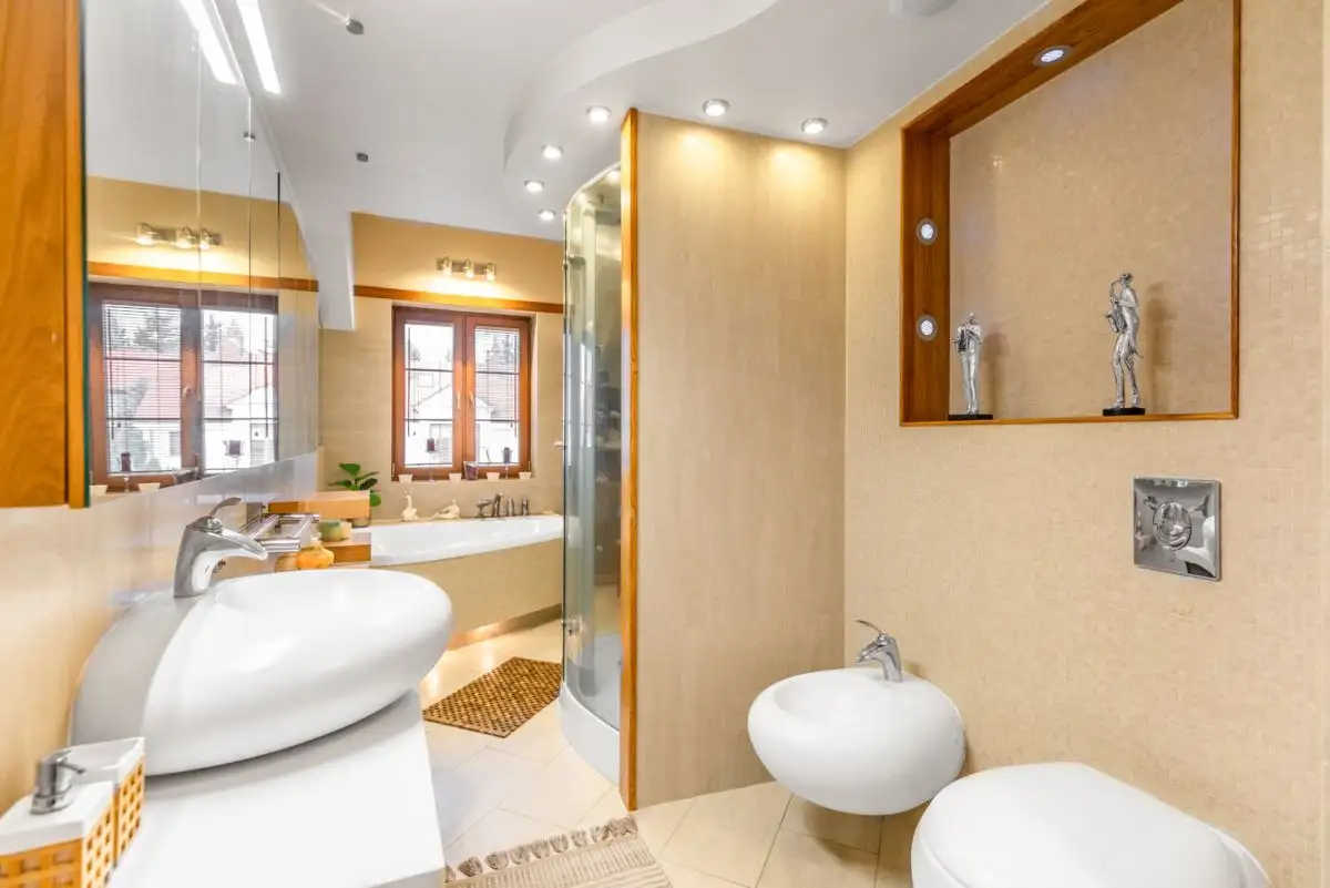 - pokój kąpielowy o pow. 13,67m² (wanna, prysznic, bidet, pisuar)