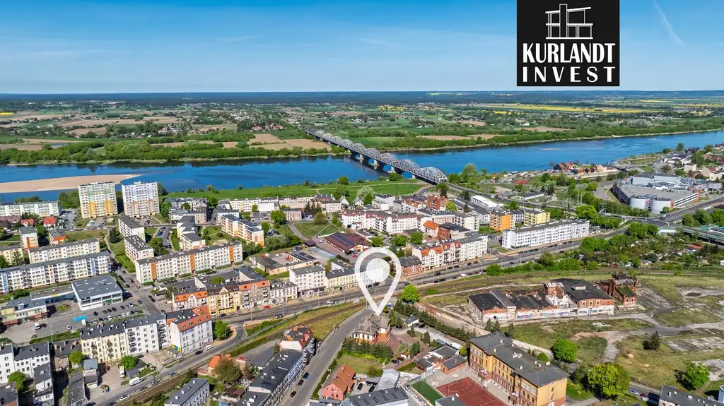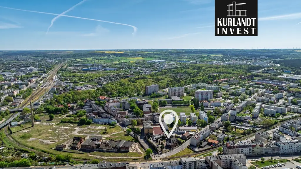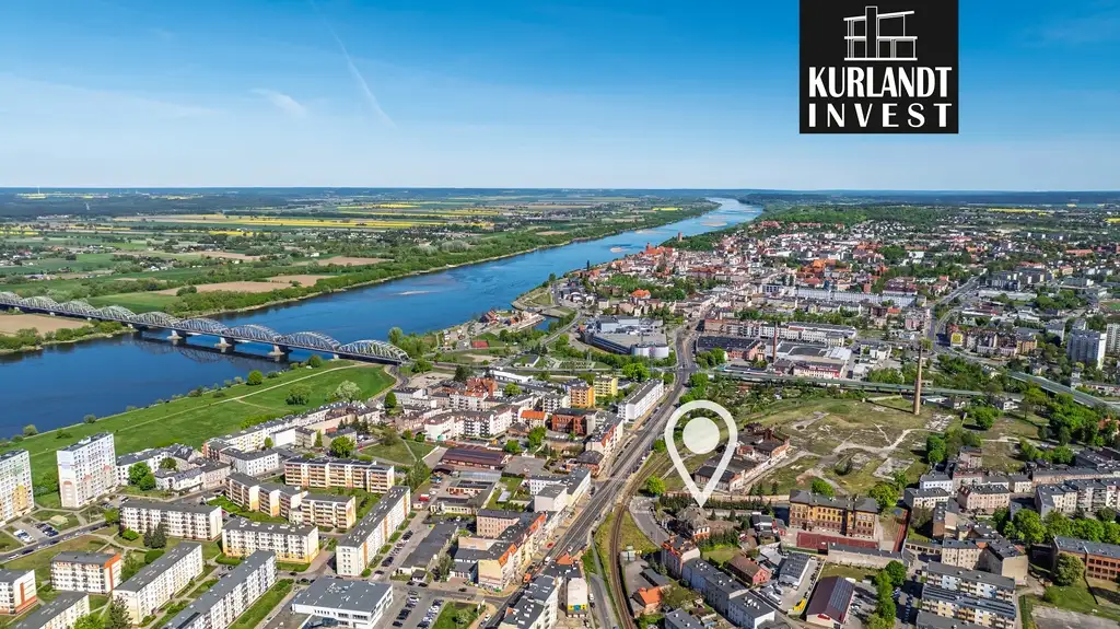 Oferowana nieruchomość znajduje się w centralnej części Grudziądza, w bezpośrednim sąsiedztwie śródmieścia, z dogodnym dostępem do komunikacji miejskiej oraz infrastruktury kolejowej (PKP i trakcja miejska).